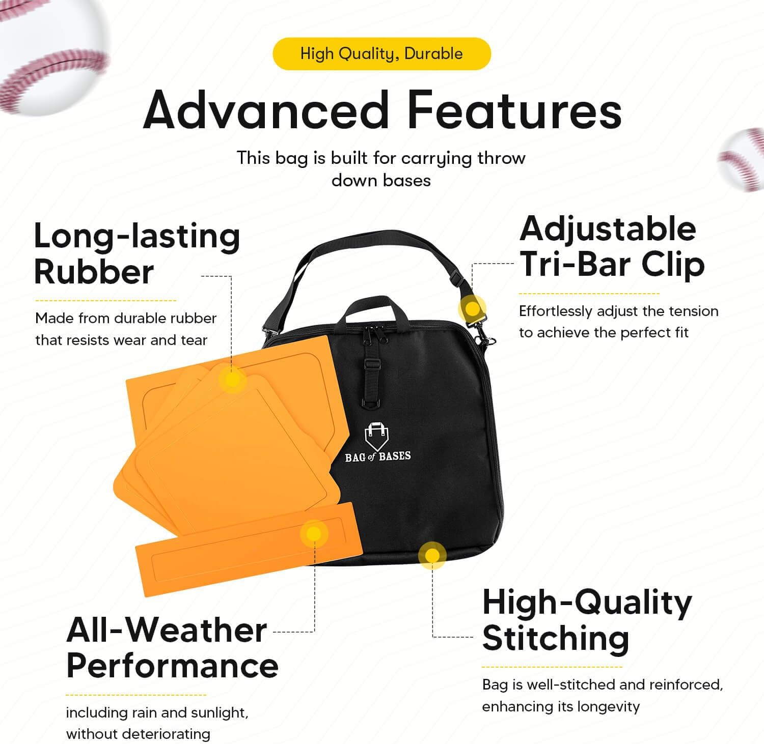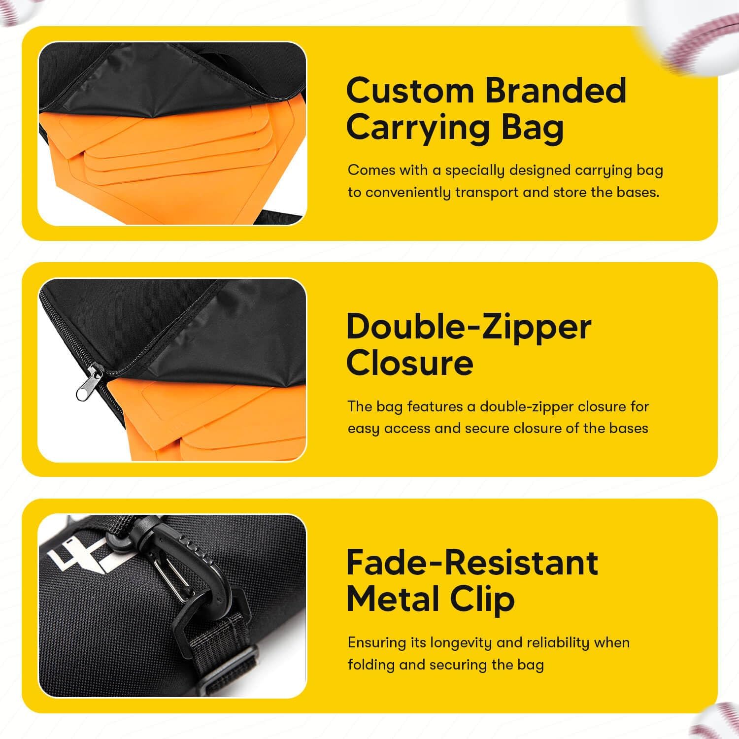 Our rubber base set features a custom-designed carrying bag, ideal for neatly organizing and transporting your baseball bases with ease. It provides robust protection against loss, damage, and dust, keeping your bases in pristine condition.