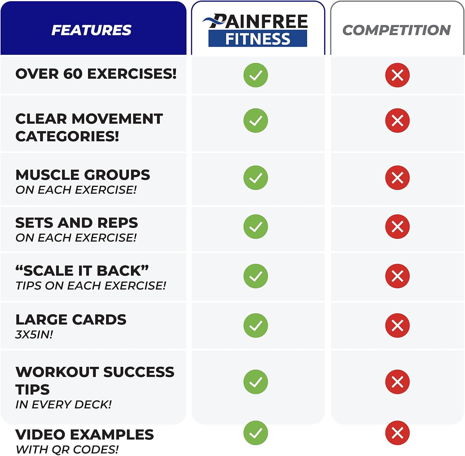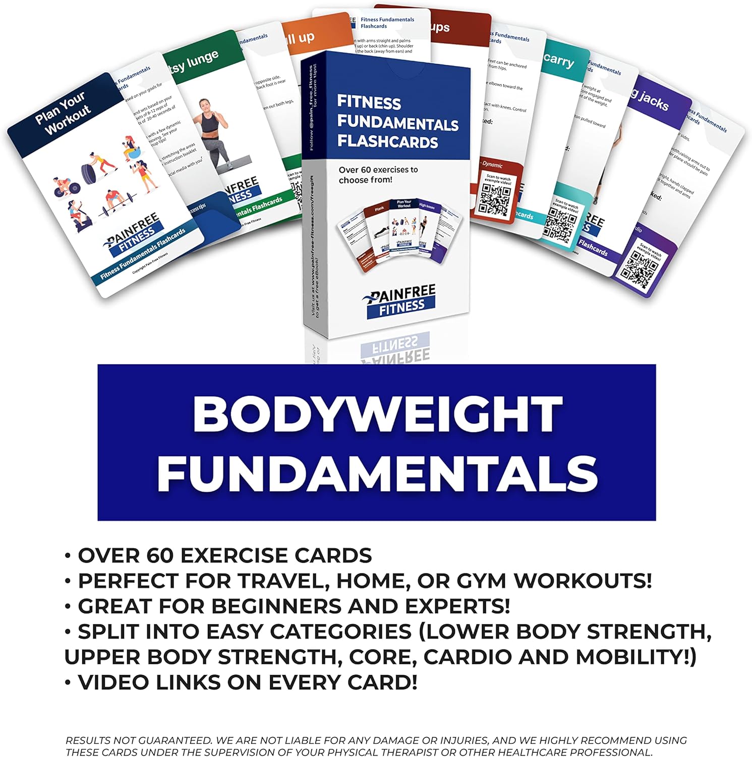 PROFESSIONAL RECOMMENDED: Trainers LOVE our amazing cards for their convenience, superior quality and WELL-RESEARCHED INSTRUCTIONS. Pain-Free Exercise Flashcards are even compatible with professional training programs AND preventative rehab! Pain Free Fitness is committed to providing fitness resources to make your next workout easy, FUN and PAIN-FREE!