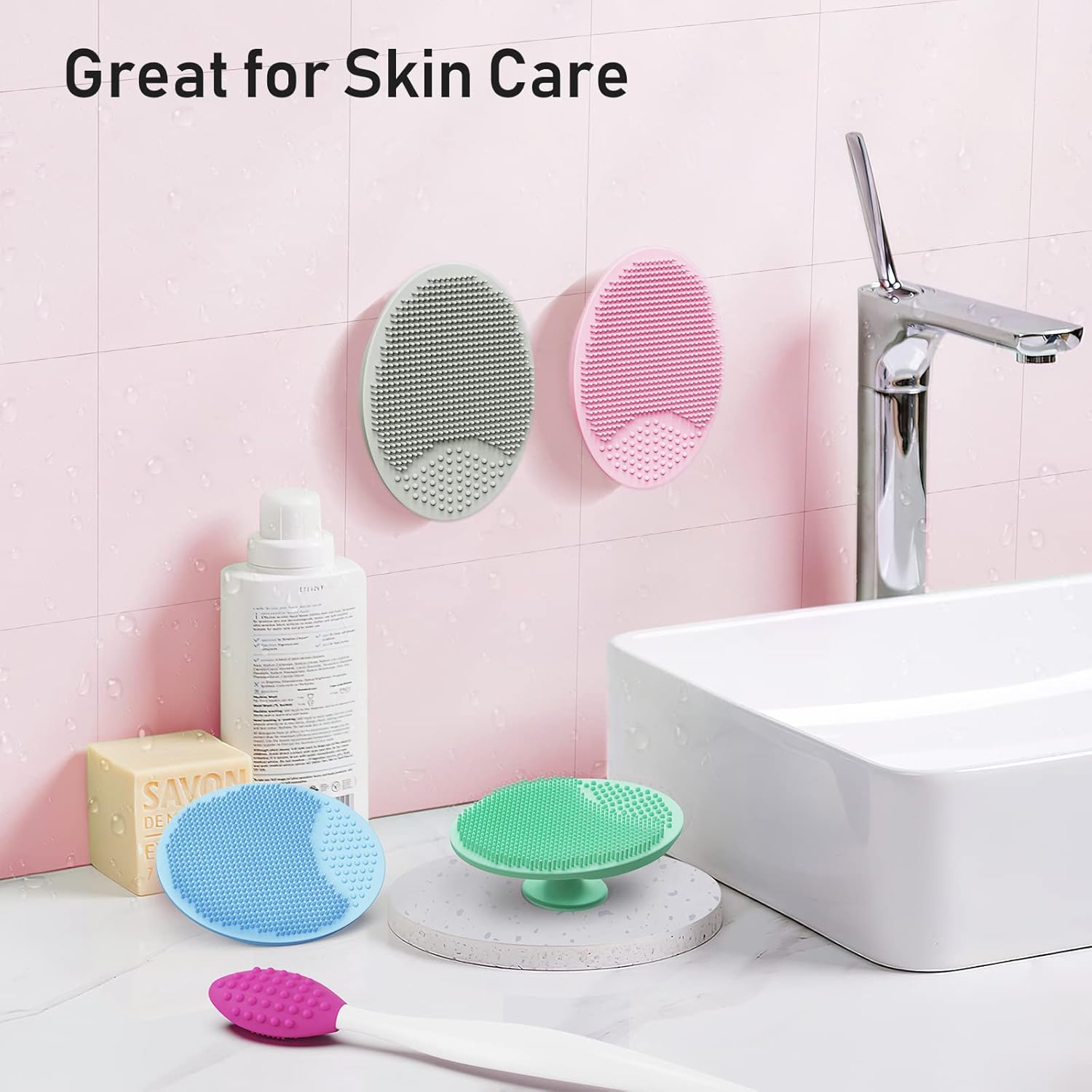 GENTLE EXFOLIATING: The silicone scrubber applies a mixture of thick and fine bristles to personalize your facial cleansing. The thick bristles are designed for gentle exfoliation and blackhead removal. The soft and fine bristles are for facial massage, pore cleansing and acne removal, which provides you with multiple skincare experiences
