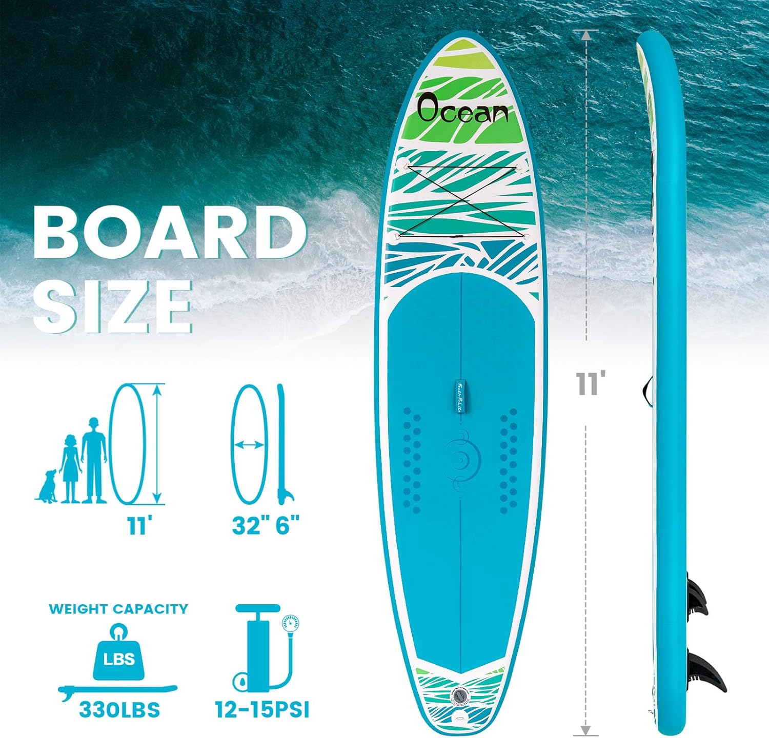 【Lightweight and Durable】The FEATH-R-LITE inflatable paddleboard is made from premium materials. Measuring 11’6″ x 33″ x 6″, it is extremely lightweight without sacrificing durability. Perfectly sized for adults and youth of all skill levels.