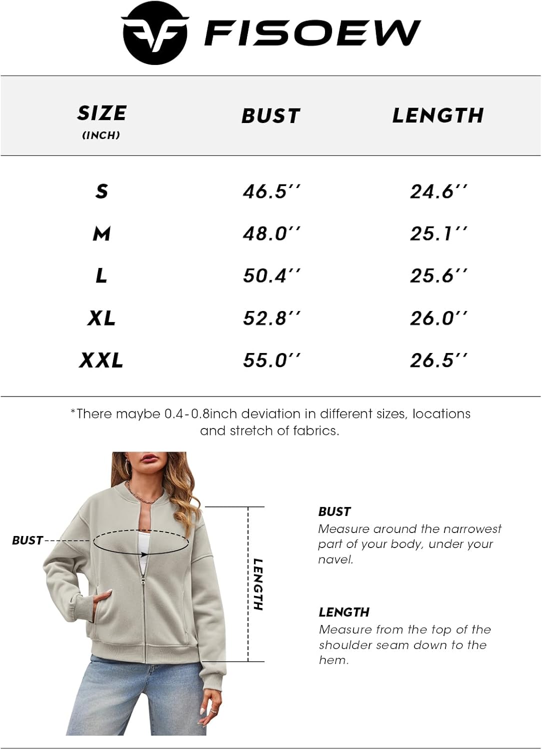 Measurements of this bomber sweatshirt jacket