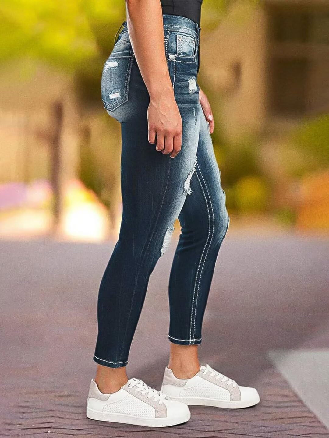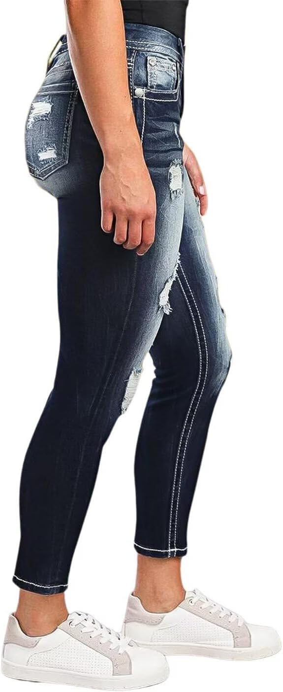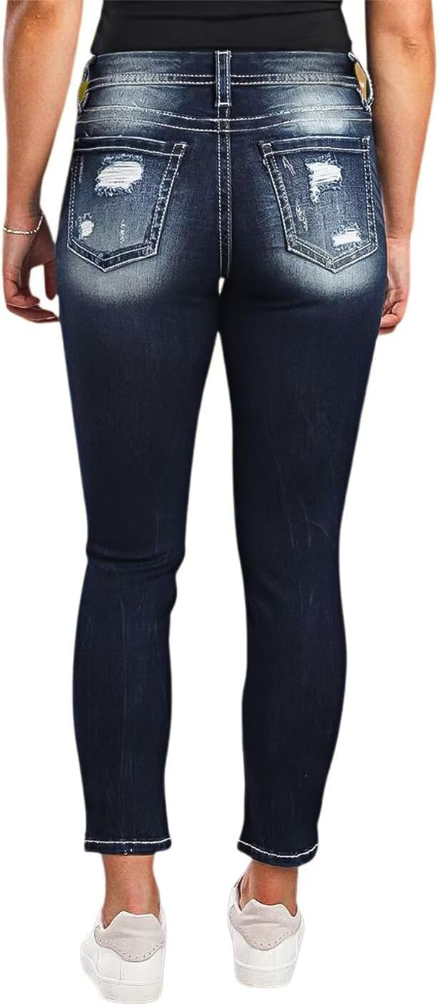 Flamingals Women’s Boot Cut Jeans Butt Lifting Crop Jeans Skinny Leg Stretchy Curvy Ripped Detail Denim Jeans