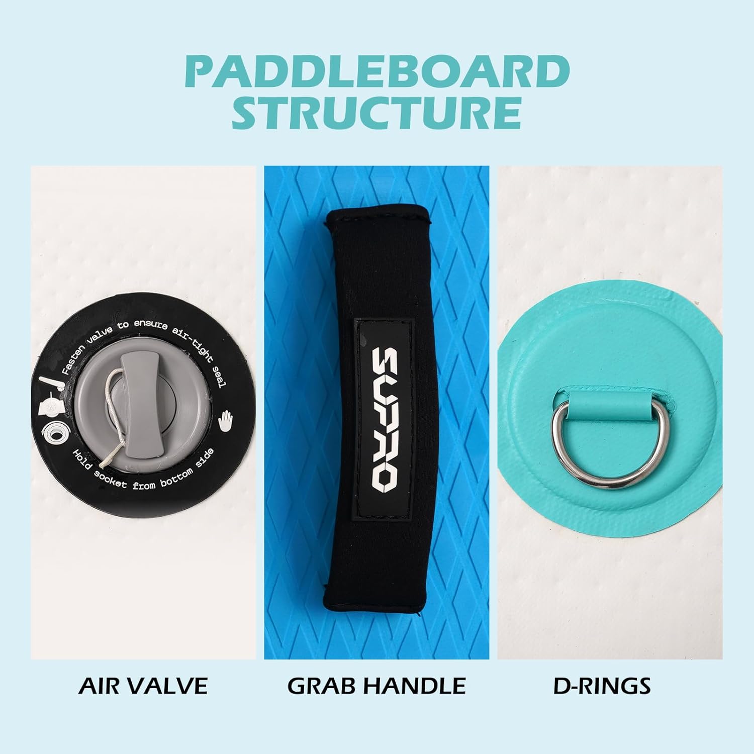 【Paddleboard Accessories】Each paddleboard is equipped with fins, valve adapter (able to fit most pumps on the market), you will reap the benefits of a colourful water experience. (Package contents are subject to pictures)