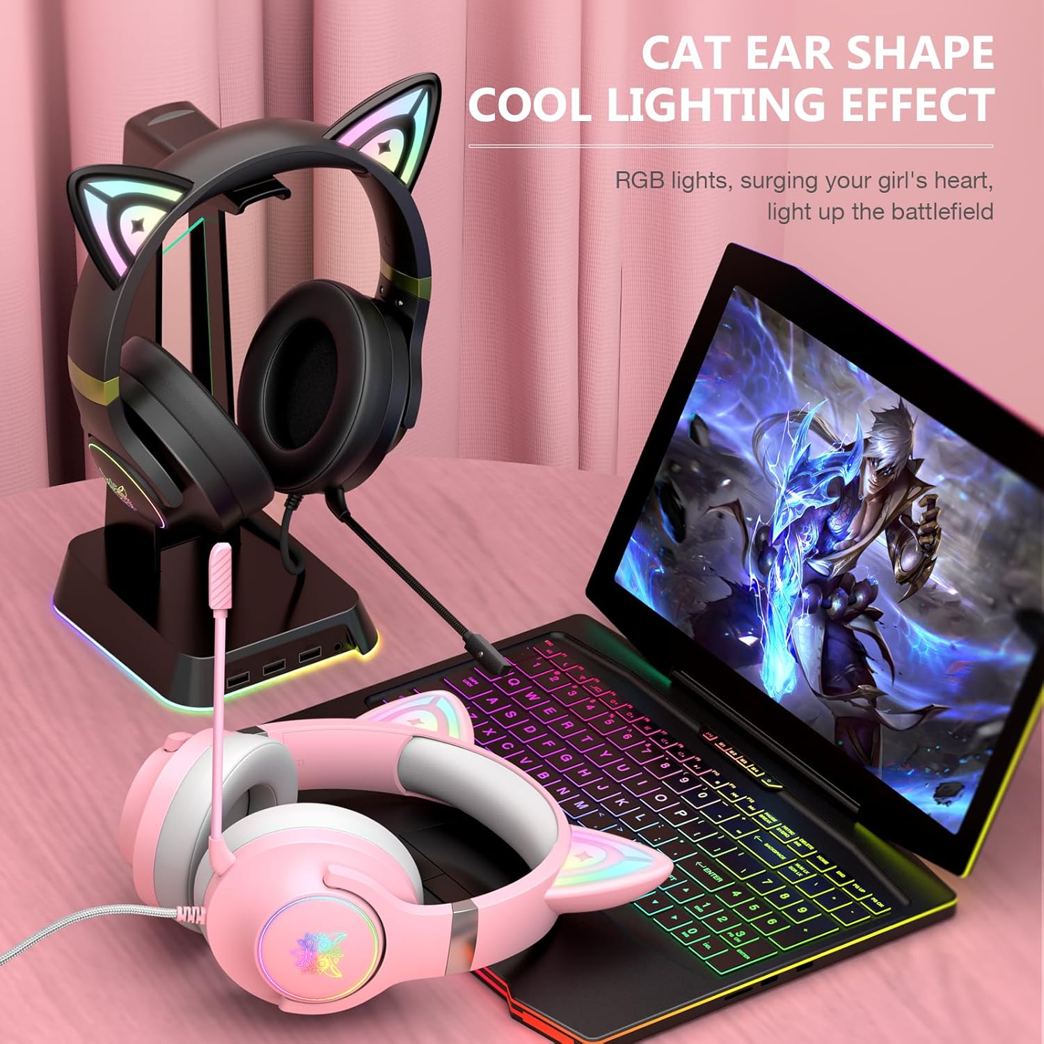 The SIMGAL gaming headset is uniquely designed for all the gamers out there. With cute magnetic cat ear design and colorful LED backlight, this headset creates an ideal atmosphere for gaming. With surround sound headphones and noise canceling microphone, it helps the gamers get crystal clear surround sound and track the rivals easily, and at the same time be heard by people on the other side clearly thus enjoy non-interrupted communication during gaming.