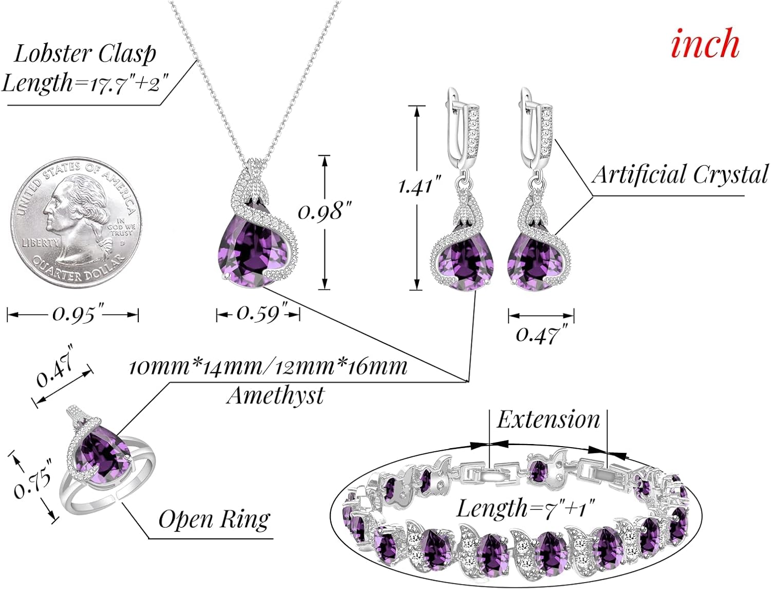 GZWHD Jewelry Set for Women Water Drop Cubic Zirconia Artificial Crystal Earrings Pendant Necklace Open Ring Tennis Bracelet Wedding Anniversary Birthday Engagement Gift for Bridesmaid Wife Girlfriend Friend