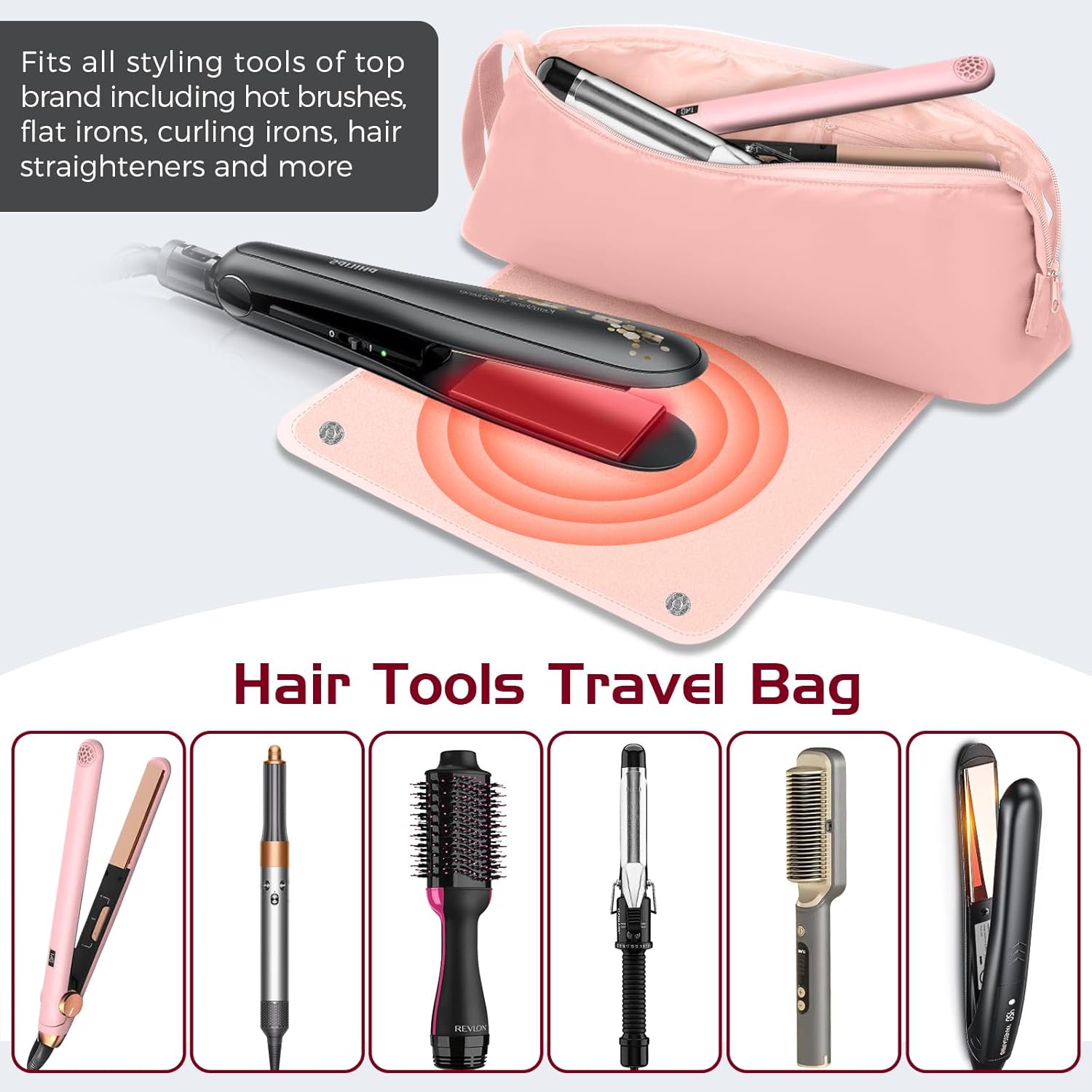 Hair Tools Travel Bag with Heat Resistant Mat, 2-in-1 Heat Resistant Hair Travel Bag for Flat Irons, Straighteners, Curling Iron, Haircare Accessories, Hair Tool Organizer Travel Essentials