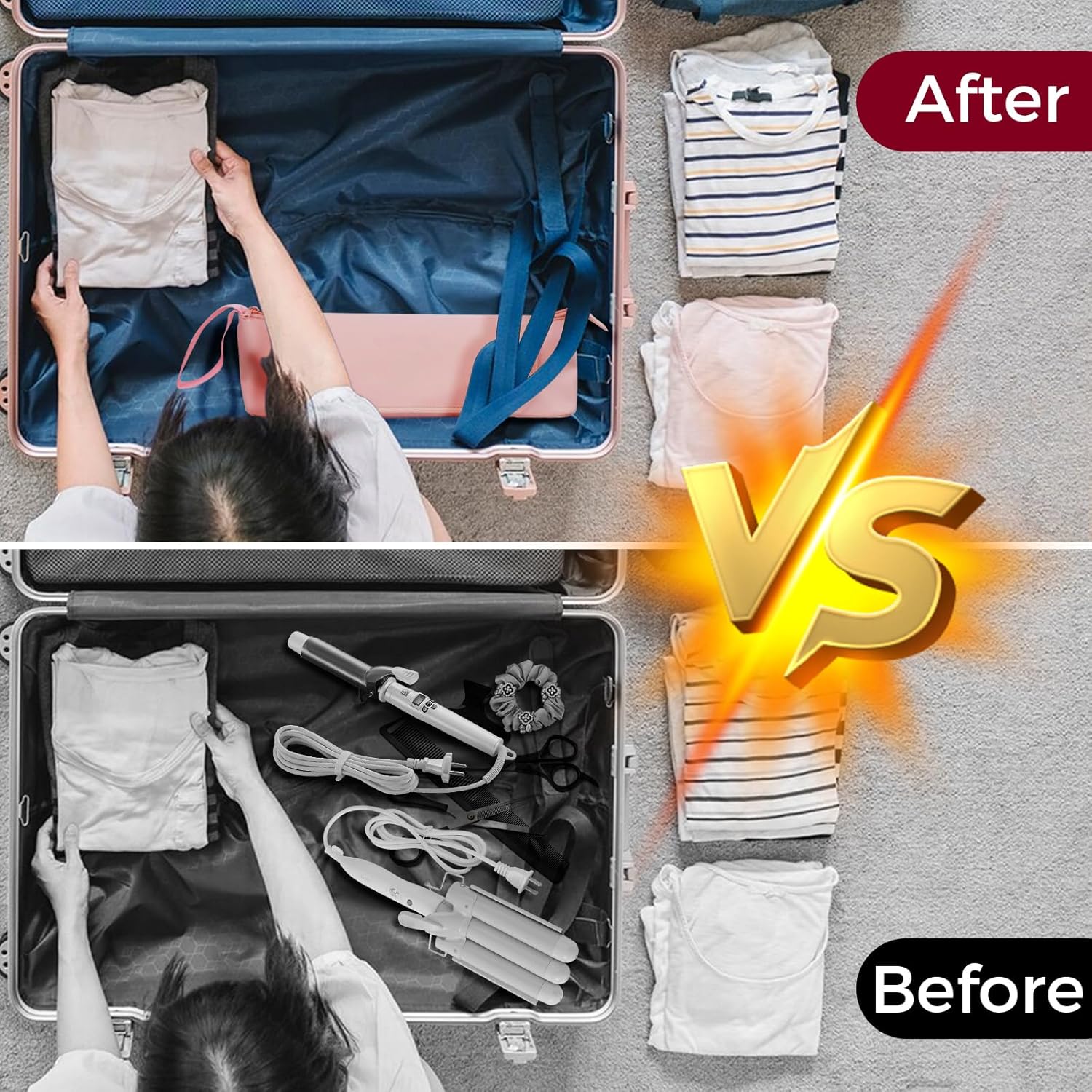 Multi-Functional Hair Travel Bag: This 2-in-1 hair tools travel bag is more innovative and multifunctional, which can hold flat irons, curling irons, hair straighteners, all kinds of daily hot hair styling tools, also a brush, comb, hair ties, hair clips and other hair accessories. This hair tool organizer with more space is perfect for travelers and home use