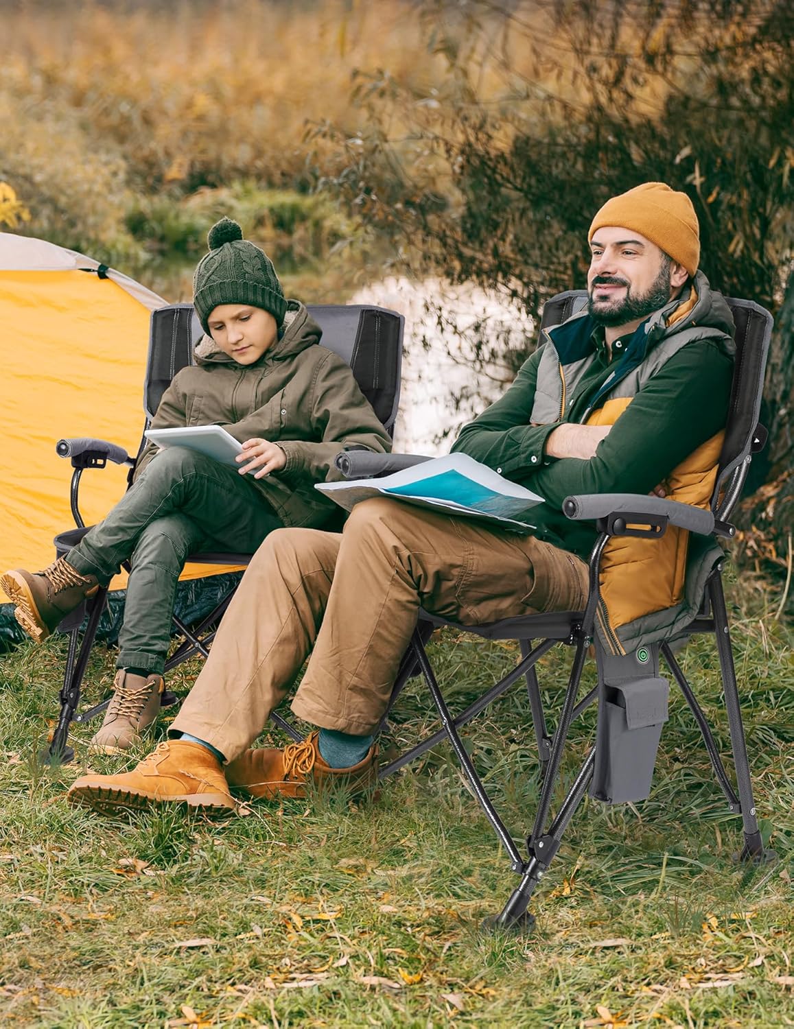 HEAVY DUTY AND DURABLE: With sturdy steel frame and fastened X-shape supports, this heated chair supports adults up to 300 lbs. The premium fabric is tear-resistant, ensuring long-lasting durability even with frequent outdoor use