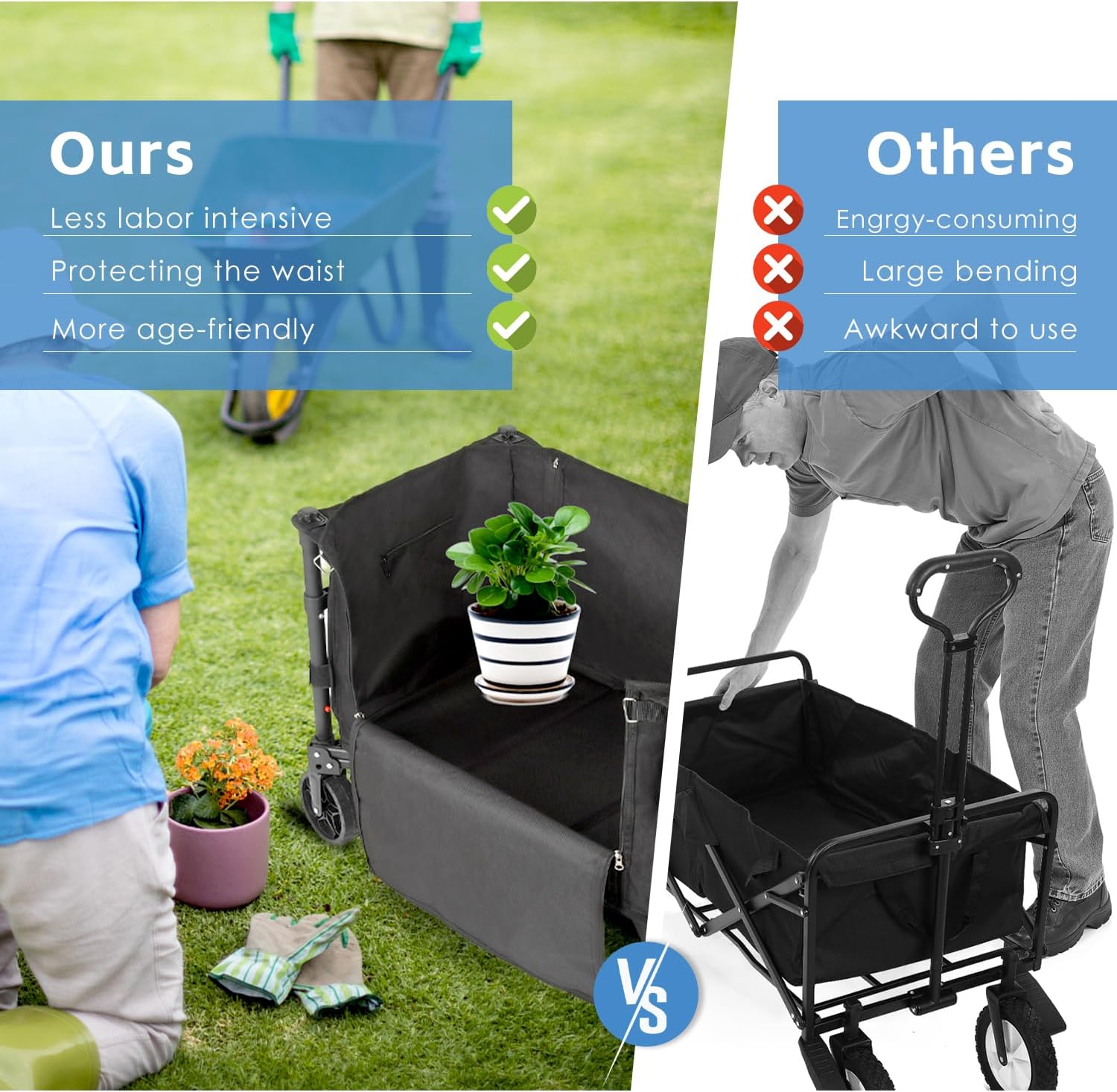 Less Labor-Consuming: This heavy duty portable wagon cart features a brand new multifunctional canvas with zippers and Velcro. When loading items, you can pull either the single-side zipper or the double-side zipper for more effortless handling, making it especially suitable for middle-aged and elderly individuals. Note: this wagon cart is suitable for beach with wet sand