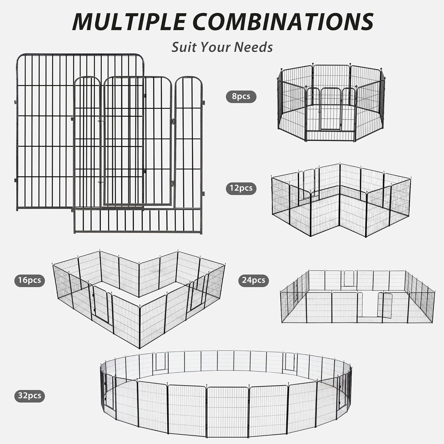 【Multiple Combanation Suits Your Needs】Our pet fence comes in different panels, and you can choose the number of panels you want, forming shapes such as octagons, squares, and rectangles. We still have 2 panels, 4 panels which is in small pieces, you can add them according to your needs.