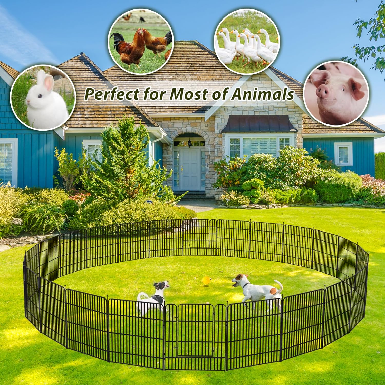 【Indoor & Outdoor Use】The dog fence is made of strong metal and coated with protective materials to help extend the service life. Dog playpen, which can be used both indoors and outdoors (great partners for camping, Rving or parks and yards), provide a larger and safer space for our pets to play and exercise. Our pet pens are also suitable for other pets such as cats, rabbits, ducks.