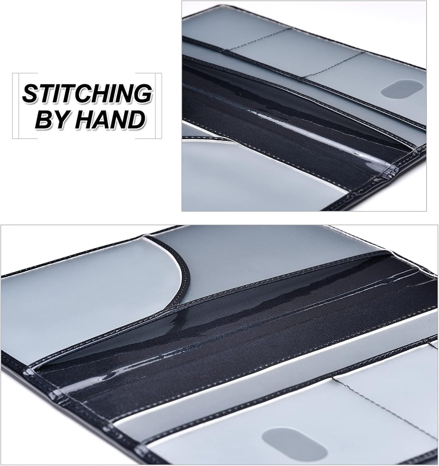 VERY PRACTICAL – And it has multi-function clear compartments which can organize various items very well. Clear and easy to read both documents when you open it up. 1 large pocket for insurance documents and 2 pockets for vehicle registration, 3 small pockets for driver’s license, ID cards, AAA cards, business cards, receipt, key contact information cards, etc. In short, it can fully meet your needs.