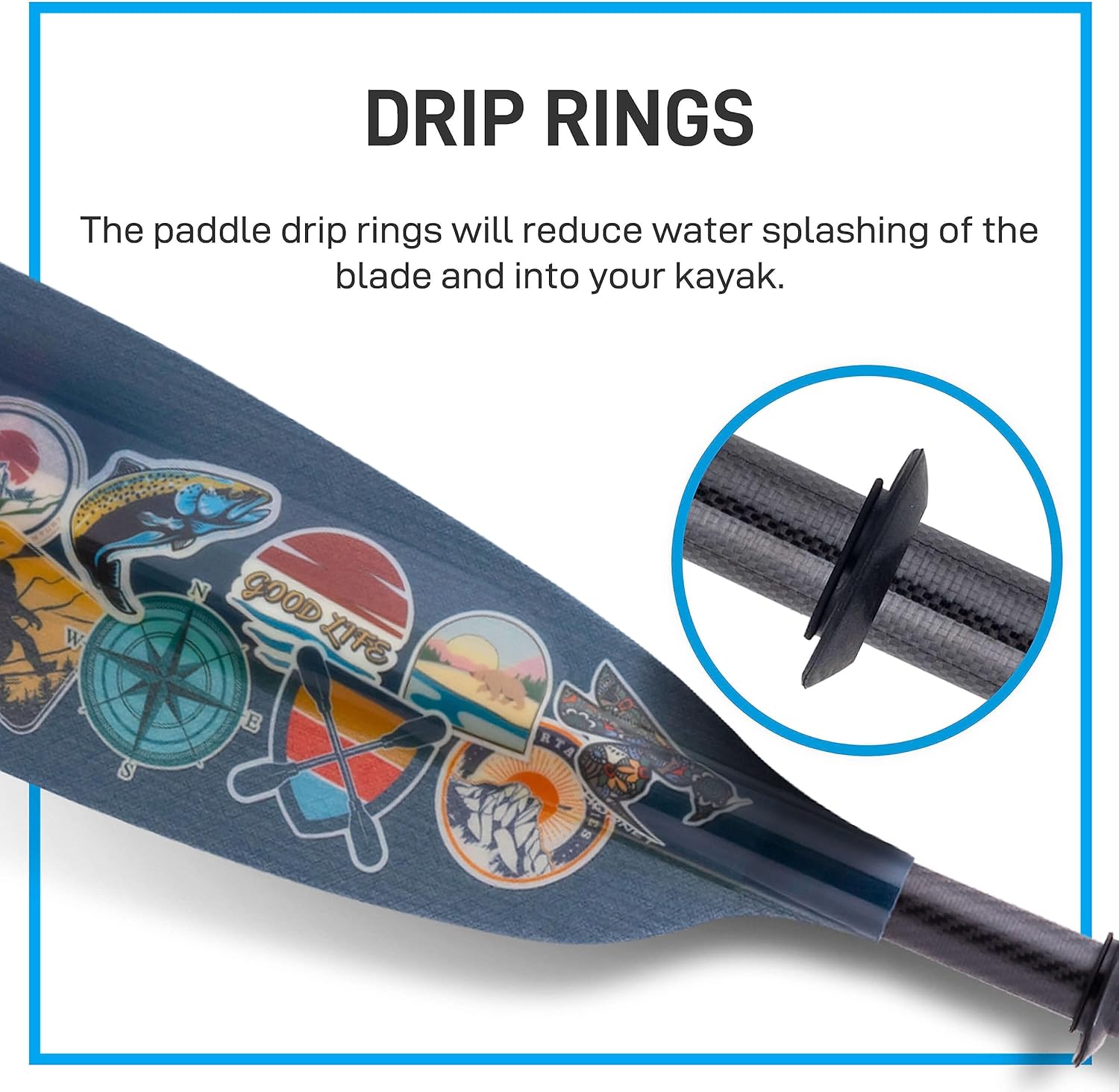 MULTIFUNCTIONAL: The midsize blade of this paddle is ideal for touring, kayak fishing and any type of recreational paddling. The kayak oars are designed for paddlers of all skill levels. Fits most kayak paddle grips. Includes kayak paddle drip rings