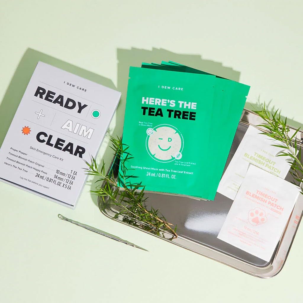 I Dew Care Blemish Emergency Skin Care Kit – Ready Aim Clear | Pimple Popper Tool | with Tea Tree Oil, Blemish Acne Patch, Face Mask, Soothing & Hydrating, Acne Treatment, Oily & Sensitive Skin, Gift