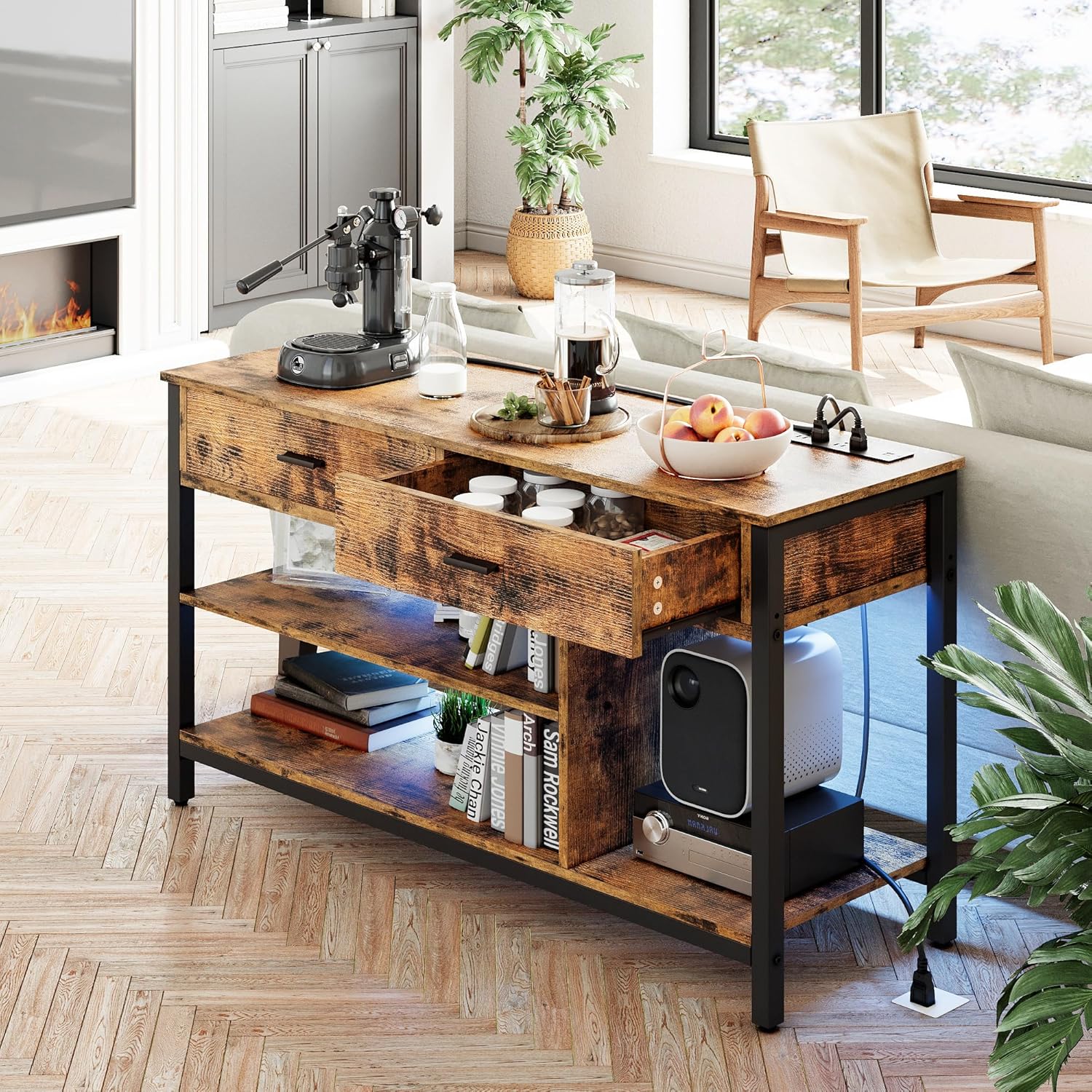 This IRONCK console table combines sleek design with ample storage. Featuring 2 open shelves and 2 drawers, it offers abundant space to showcase your favorite books, display decorative items, and store essentials. sofa tablesofa table AS your Sofa Table