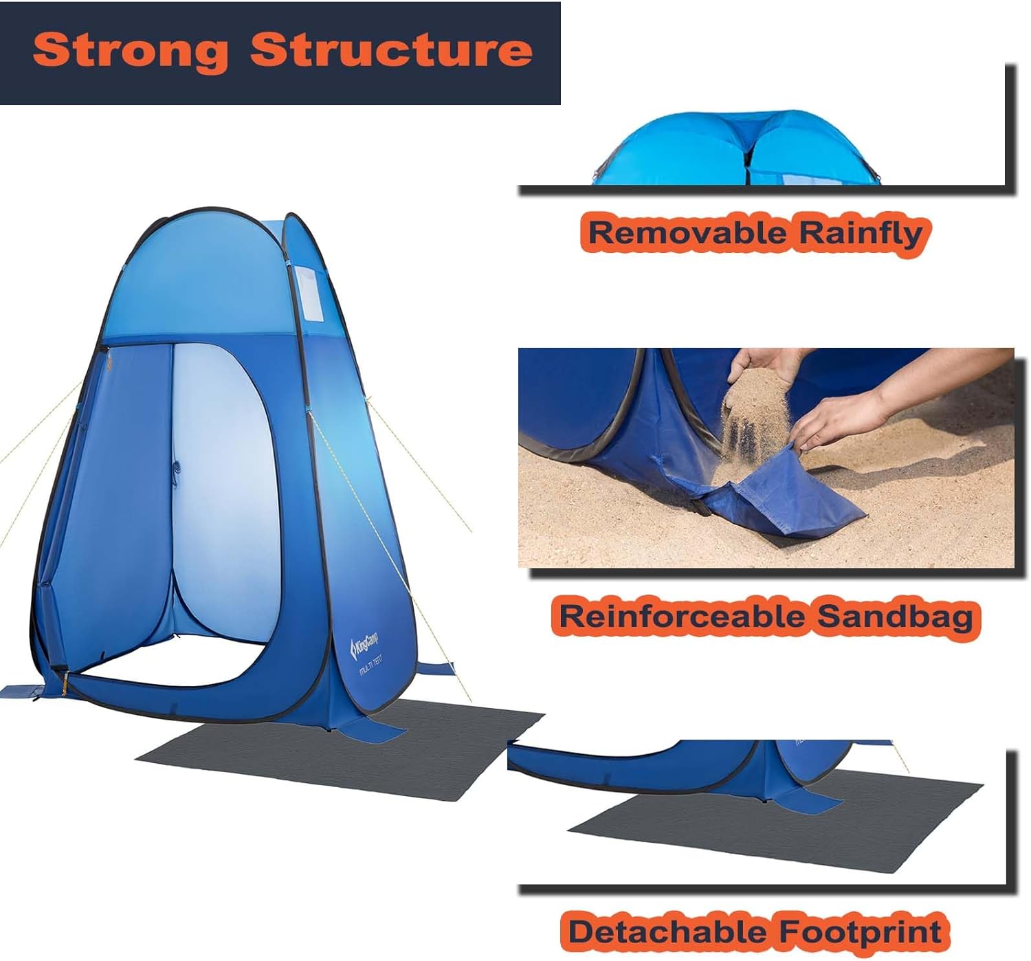 Customers like the roomy and functionality of the tent. They mention it has enough room for showering as well as a changing room and is compact to store. Some are happy with the camping value. However, some customers have reported that the zipper ripped and there was already a tear on the bottom of the tent. Opinions are mixed on the durability and ease of setup.