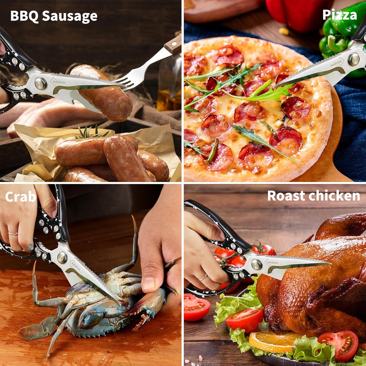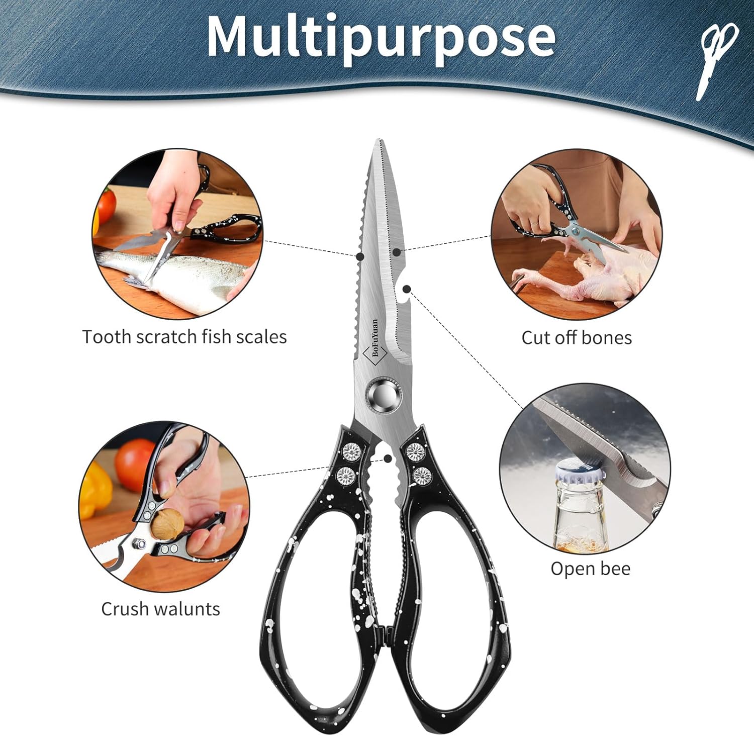 MULTIPURPOSE KITCHEN SHEARS FOR FOOD: Ideal for cutting bone, chicken, meat, vegetables, and hard packaging; essential tool for chefs