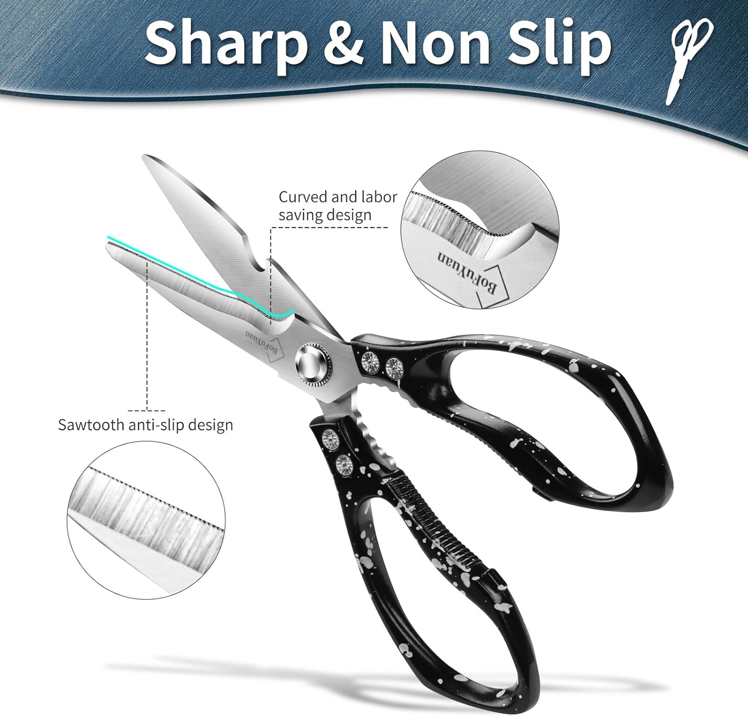 Kitchen Shears for Food Heavy-Duty: Multipurpose Kitchen Shears for Cutting Chicken, Bone, Meat, Food, (9” Black)