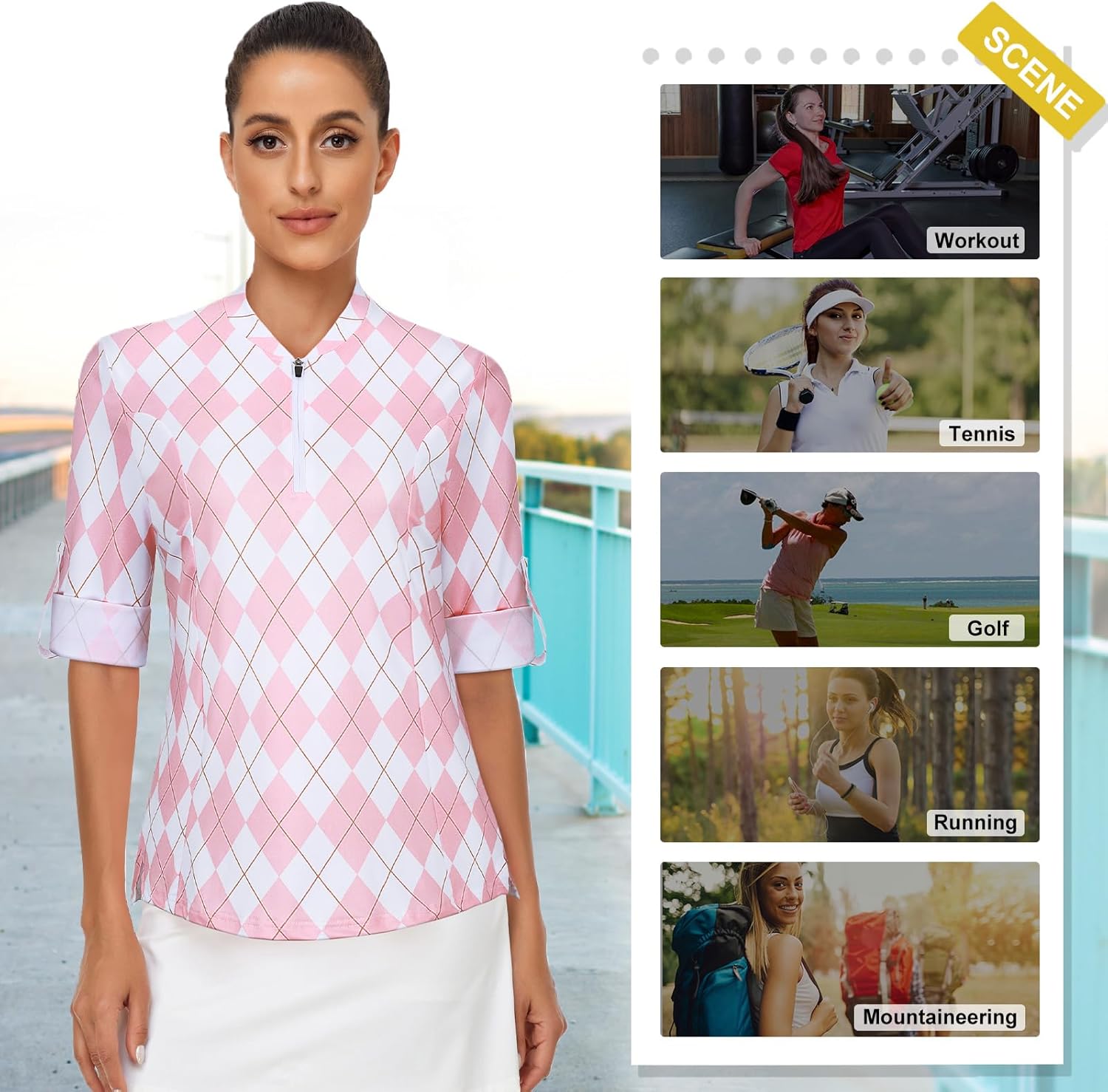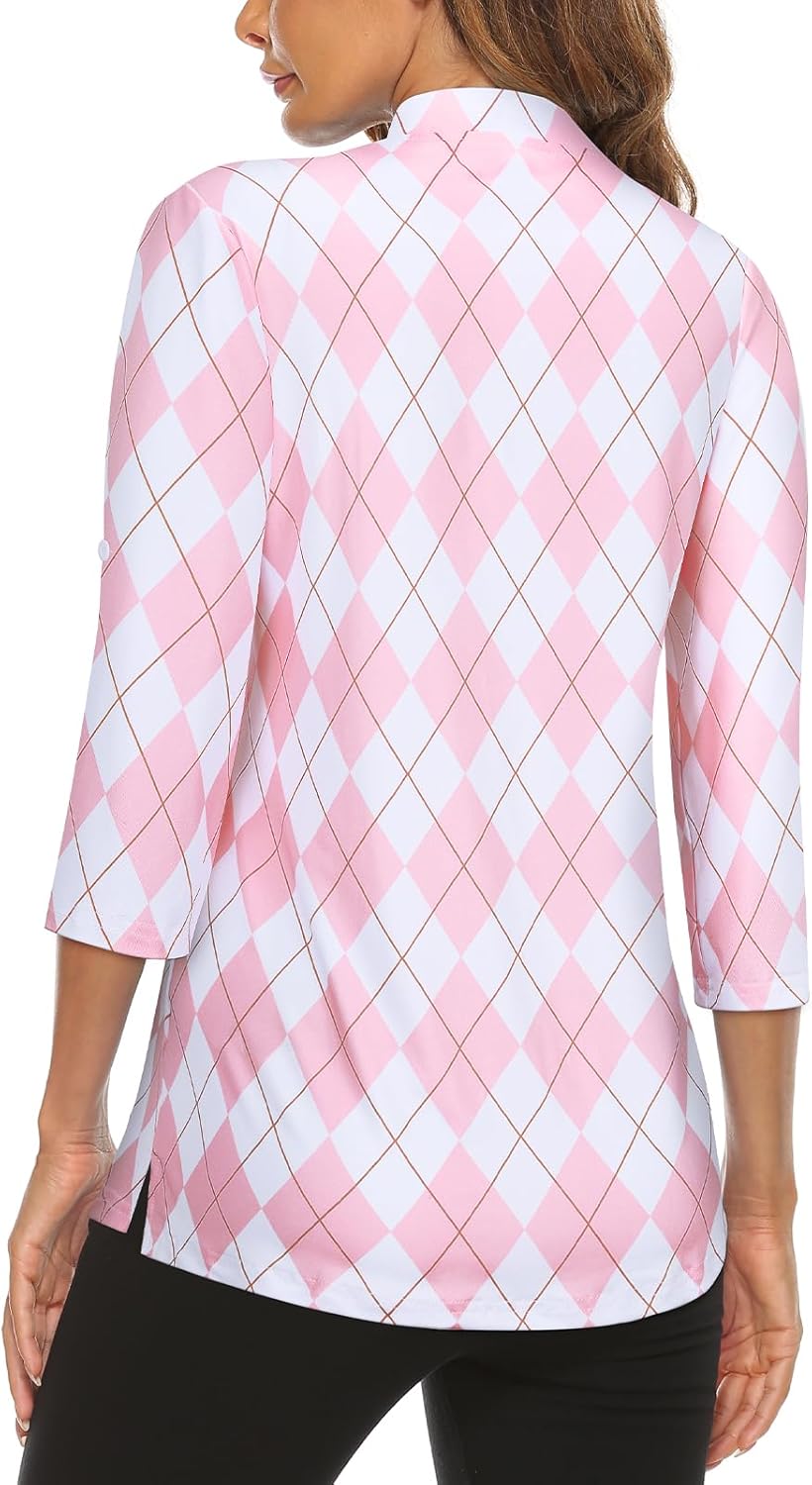 Koscacy Women’s 3/4 Roll Sleeve Golf Tennis Polo Shirts UPF50+ Half Zip Dry Fit Workout Tops Athletic Shirt