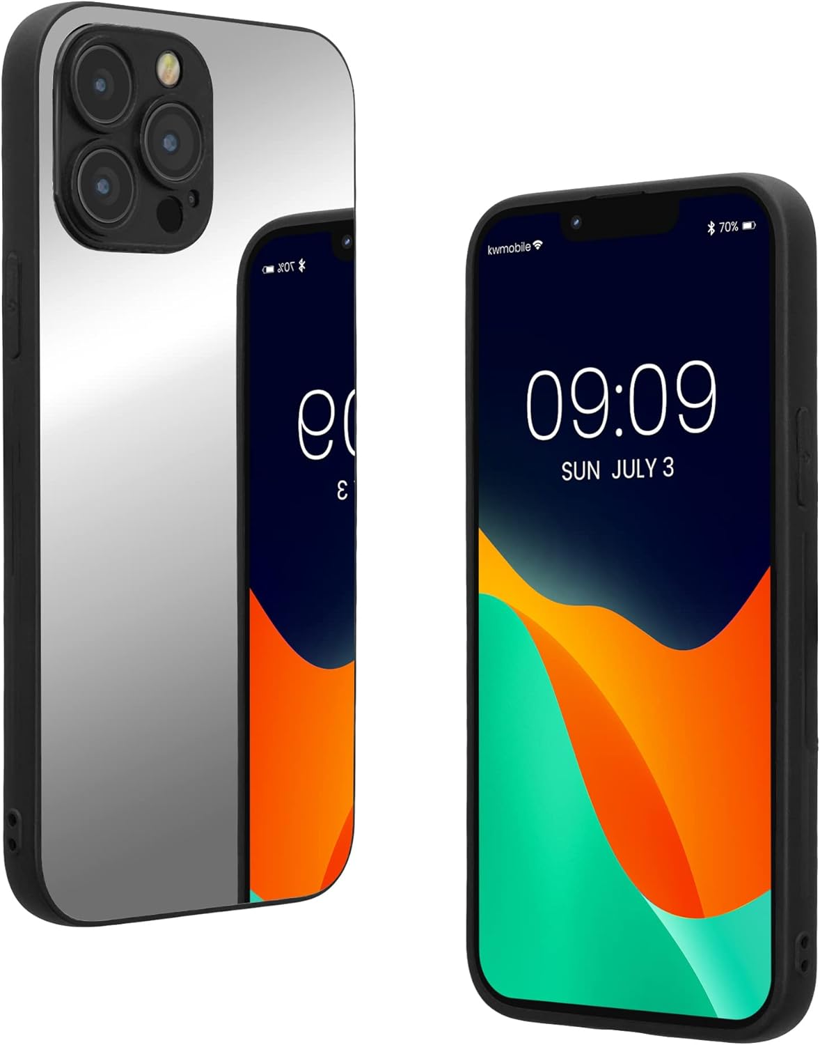 kwmobile Mirror Phone Case Compatible with Apple iPhone 13 Pro Max – Cover with Reflective Back for Smartphone – Silver Reflective