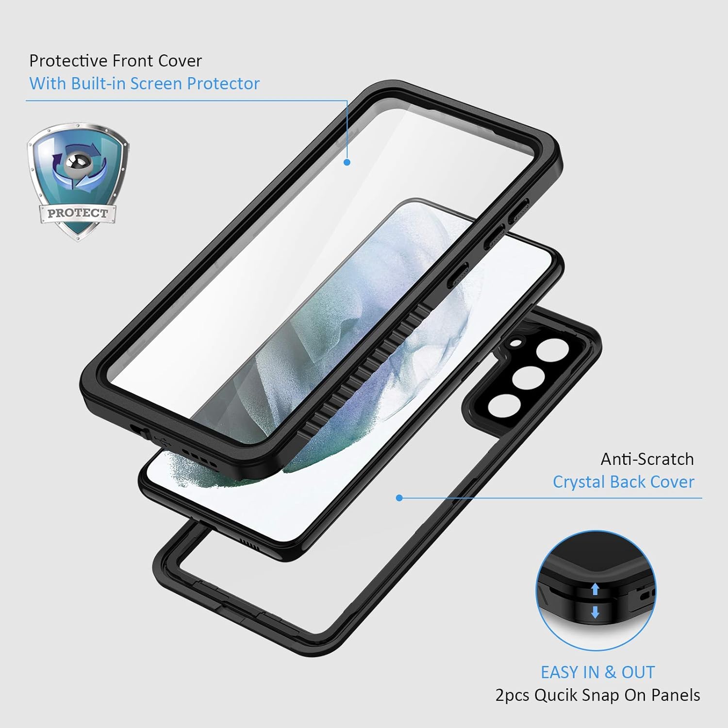 Lanhiem Samsung Galaxy S21+ Plus Case, IP68 Waterproof Dustproof Shockproof Case with Built-in Screen Protector, Full Body Heavy Duty Protective Cover for Galaxy S21 Plus 5G 6.7 Inch, Black