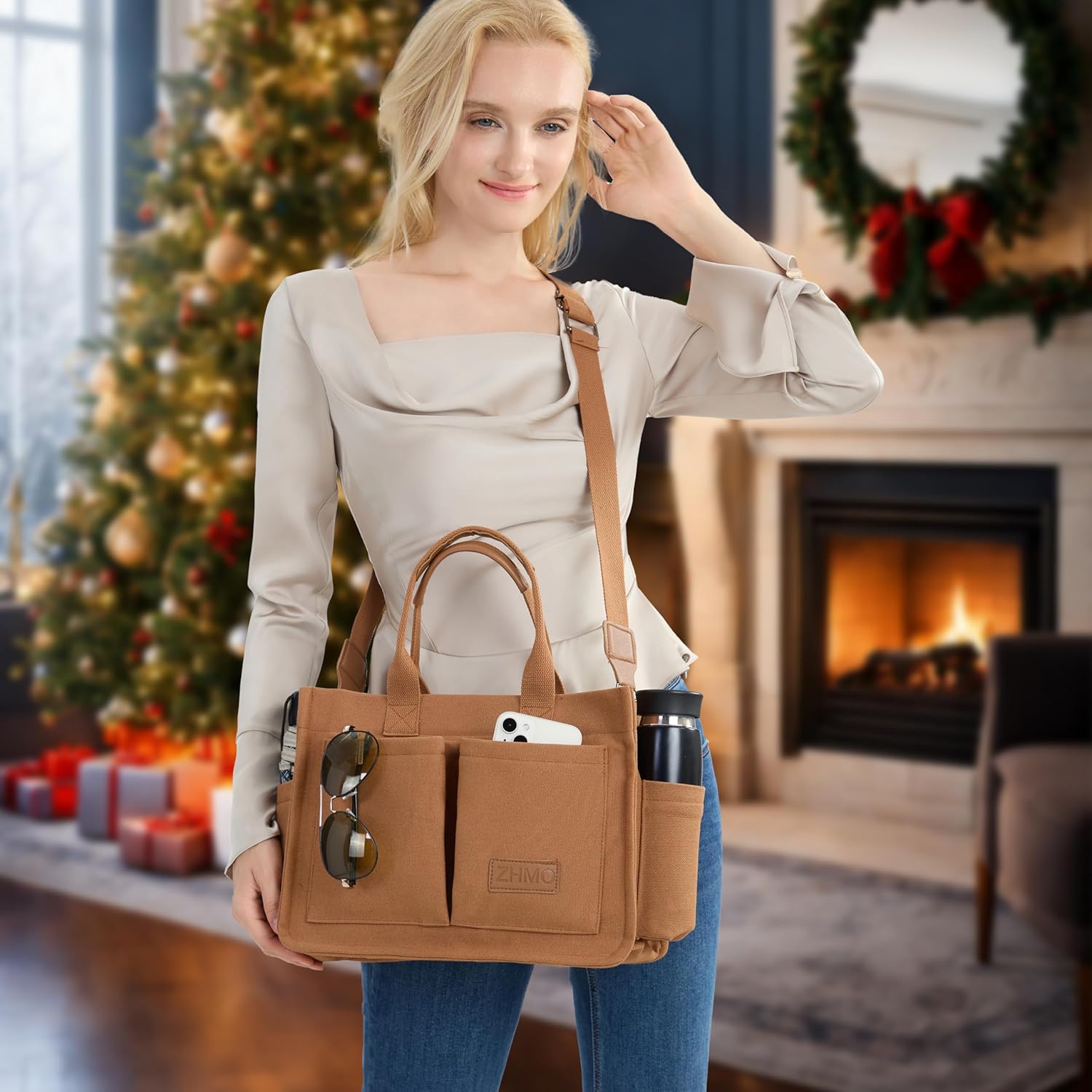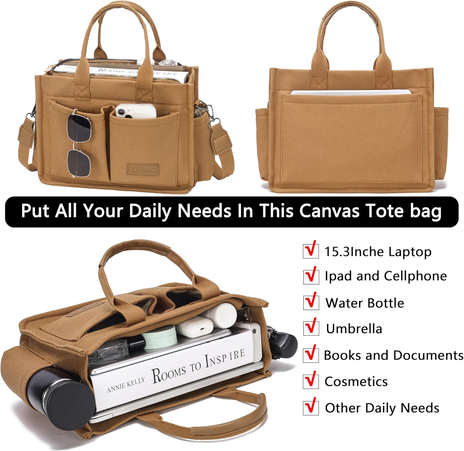 Large Canvas Tote Bag for Women With Pockets,Laptop Crossbody Purses Everything Everyday Bag Handbags for Work Beach Gym