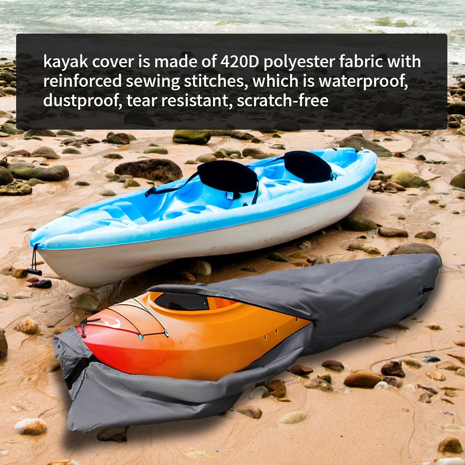Durable Material: Made from 420D marine-grade polyester fabric, this kayak cover offers robust protection against wear and tear, ensuring long-lasting use