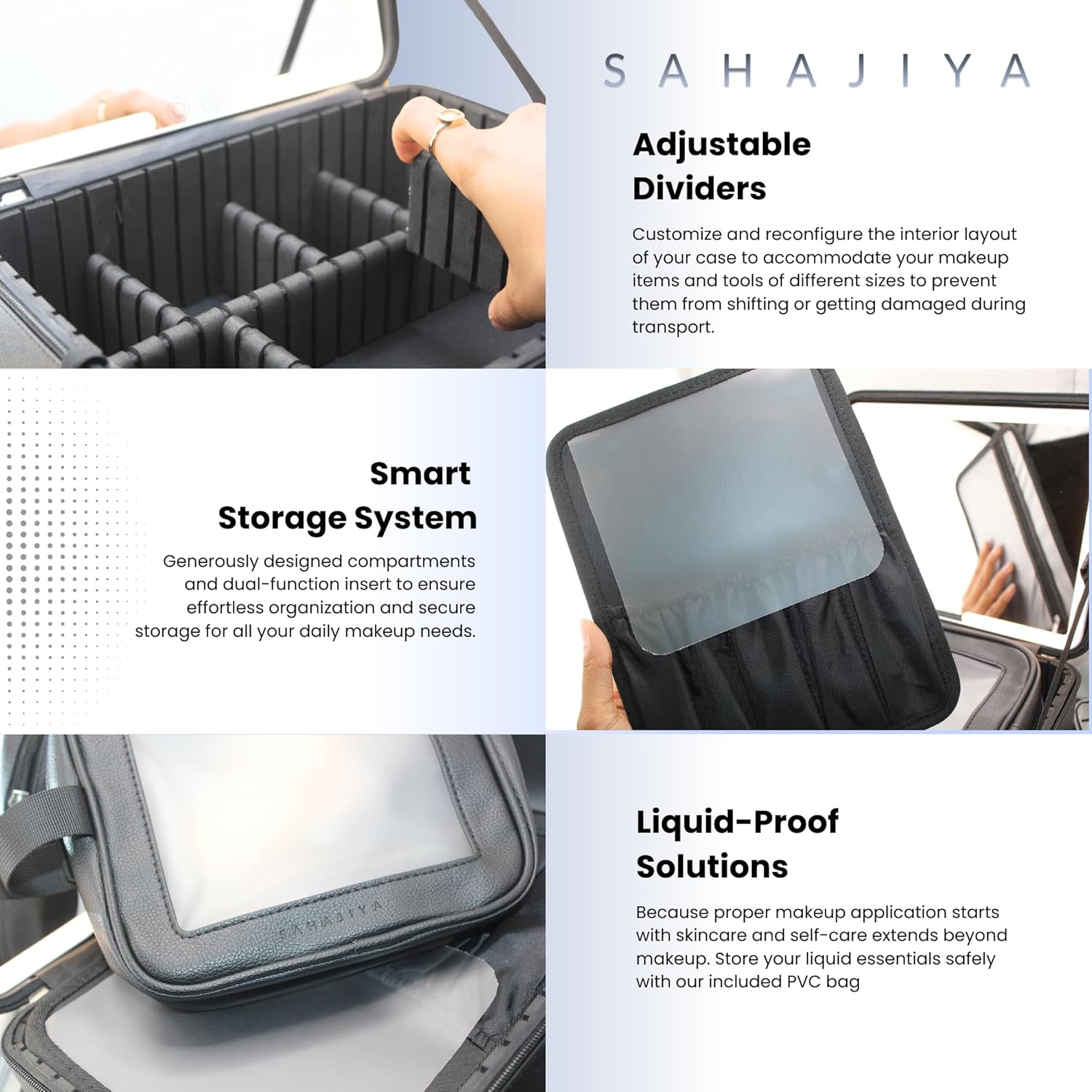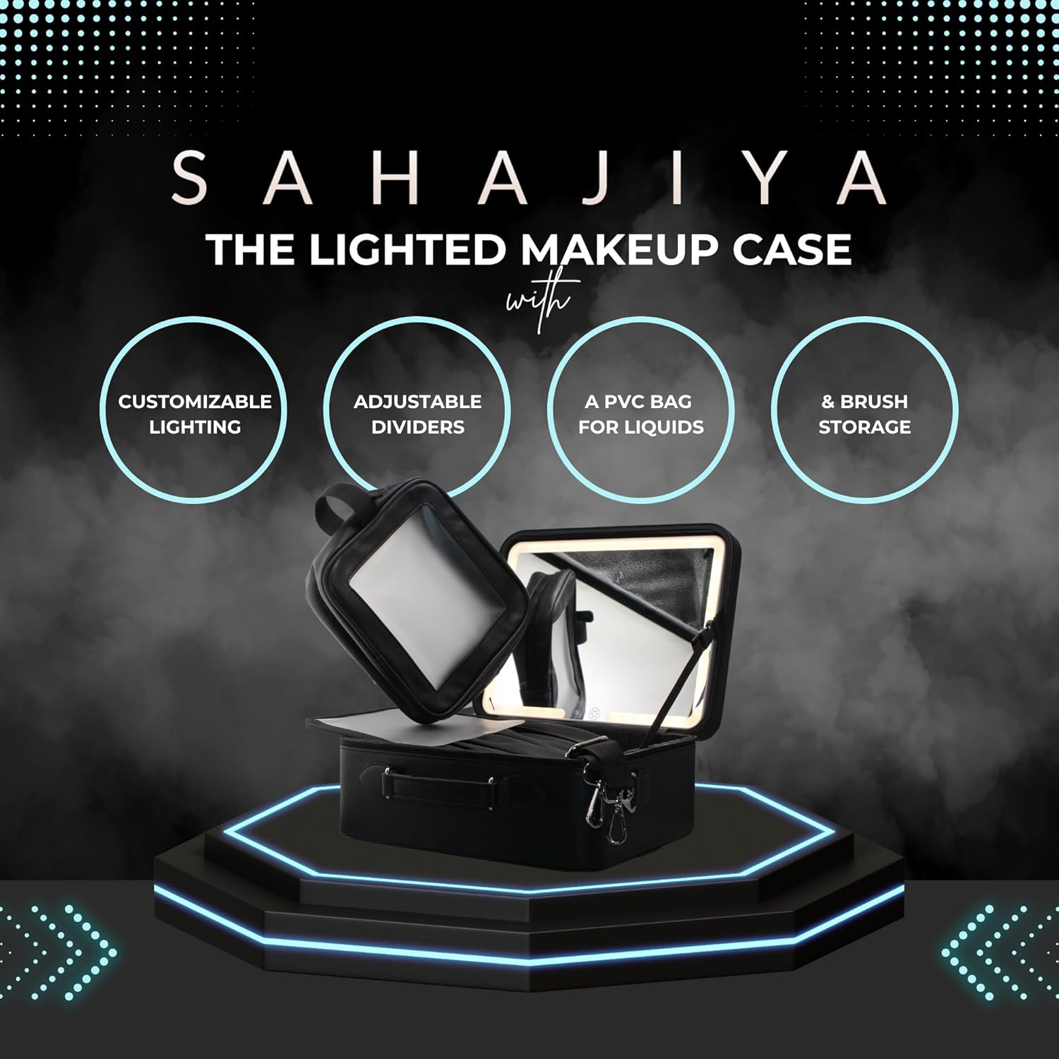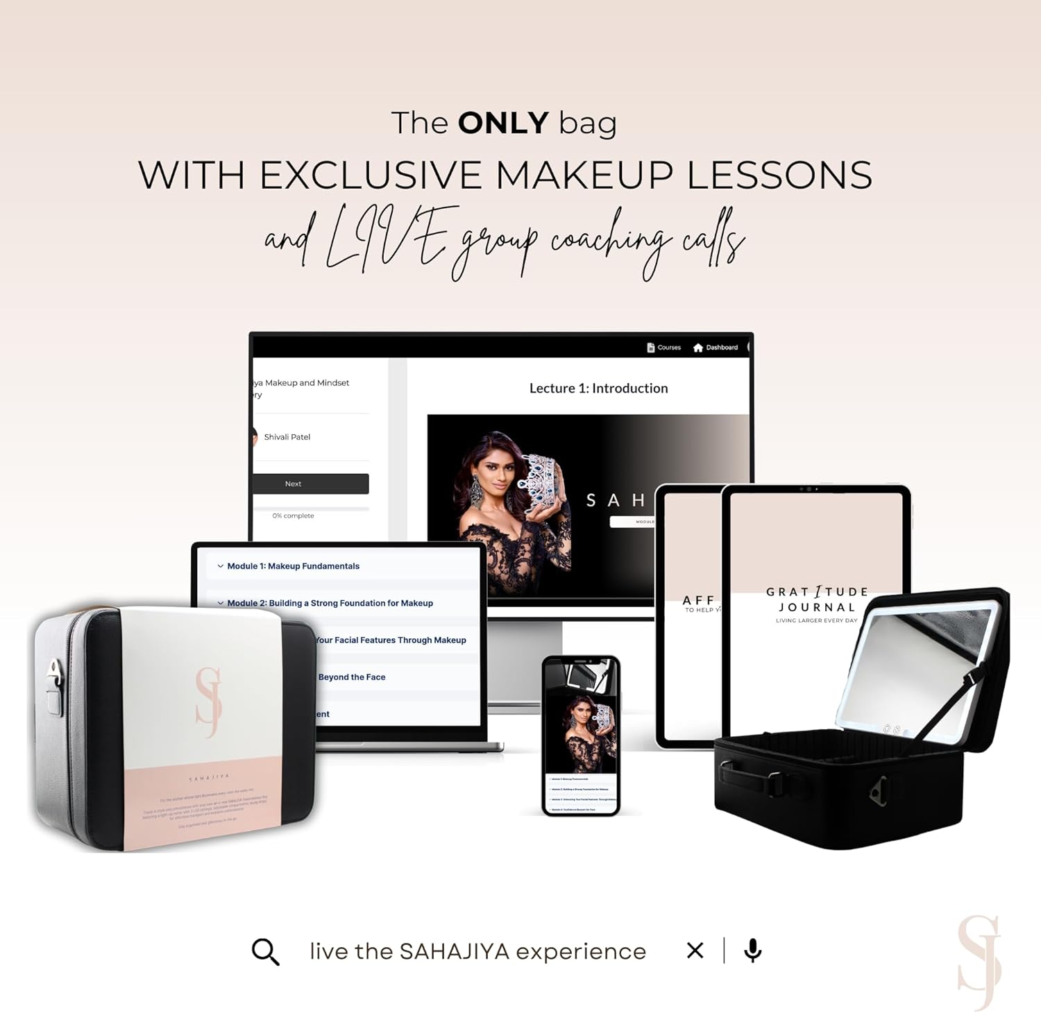 * LIVE Coaching Sessions: With Sahajiya, walk away with not just a portable lighted makeup case, but also makeup lessons and LIVE guided group coaching calls with Miss Supranational USA 2021, Shivali Patel. Designed in the USA and handcrafted internationally exclusively for the woman whose light illuminates every room she walks into. Our makeup bag with led mirror boasts a well-thought out design and top-notch quality because staying glam on the go should be easy.