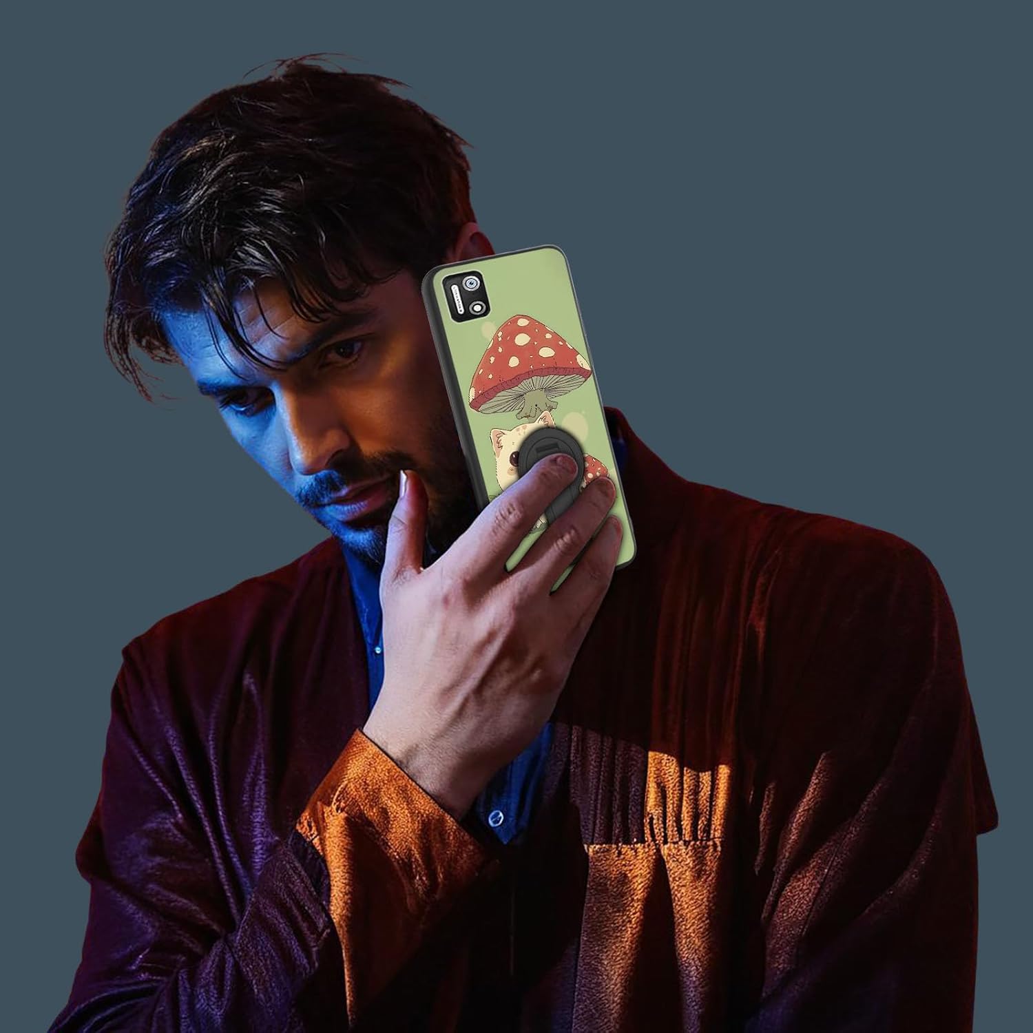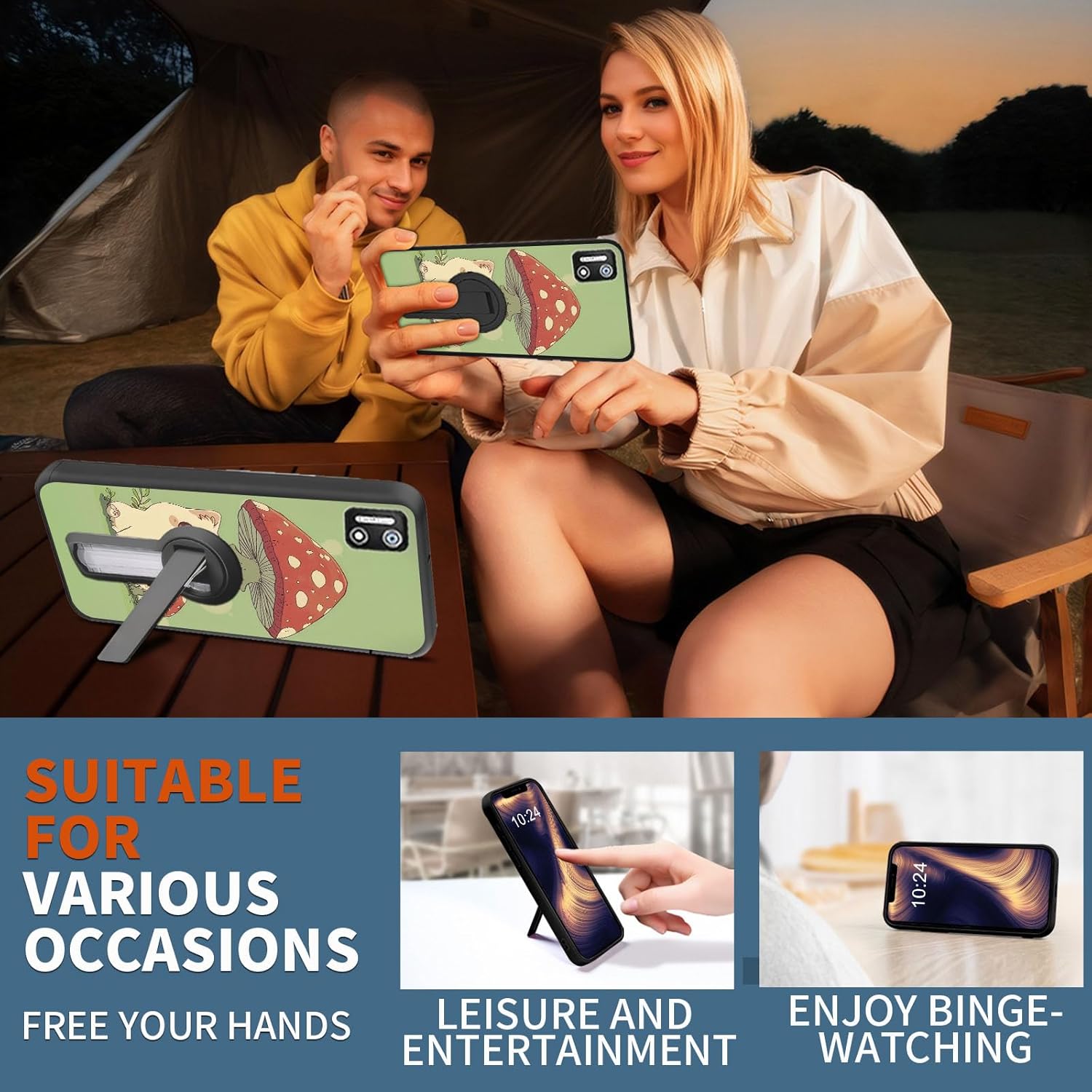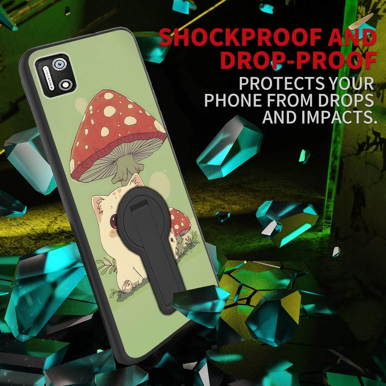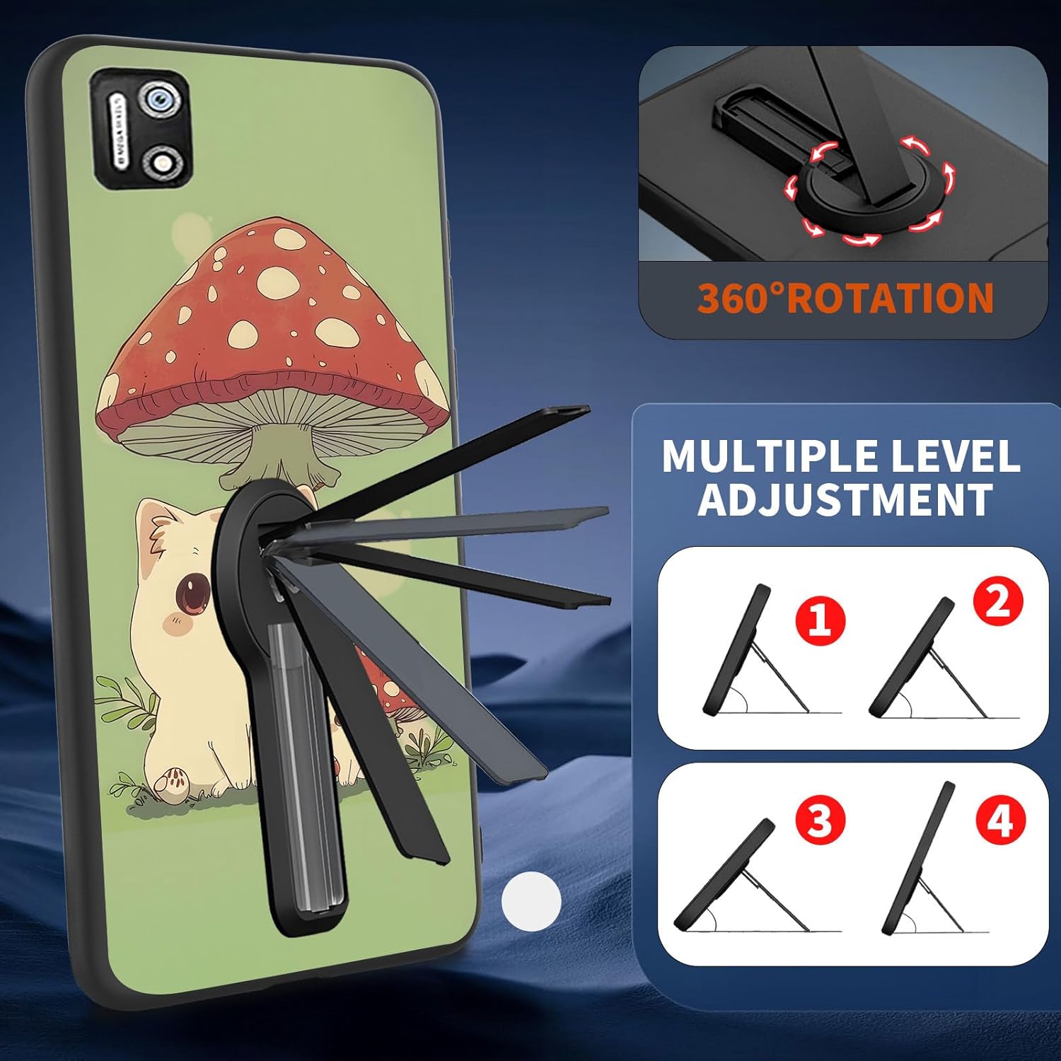 Lightweight Mobile Accessory for Cloud Stratus C7 Case, Shockproof Protective Cover with 360-Degree Versatile Rotating Stand Stylish Design(Cartoon Mushroom Cat)