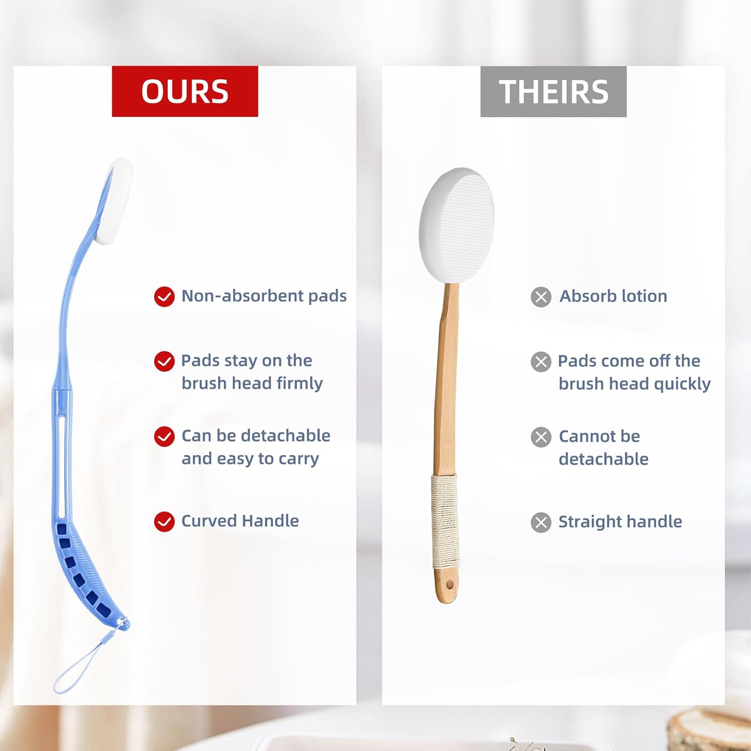 【Detachable Non-Slip Handle】- Unlike traditional straight-handled long-handled brushes, this 20.5-inch back applicator for lotion can be disassembled into two parts and can be taken anywhere. The non-slip thickened handle provides a comfortable and firm grip, fits the curve of the human body and fits better on the back, so you don’t have to worry about slipping when using it
