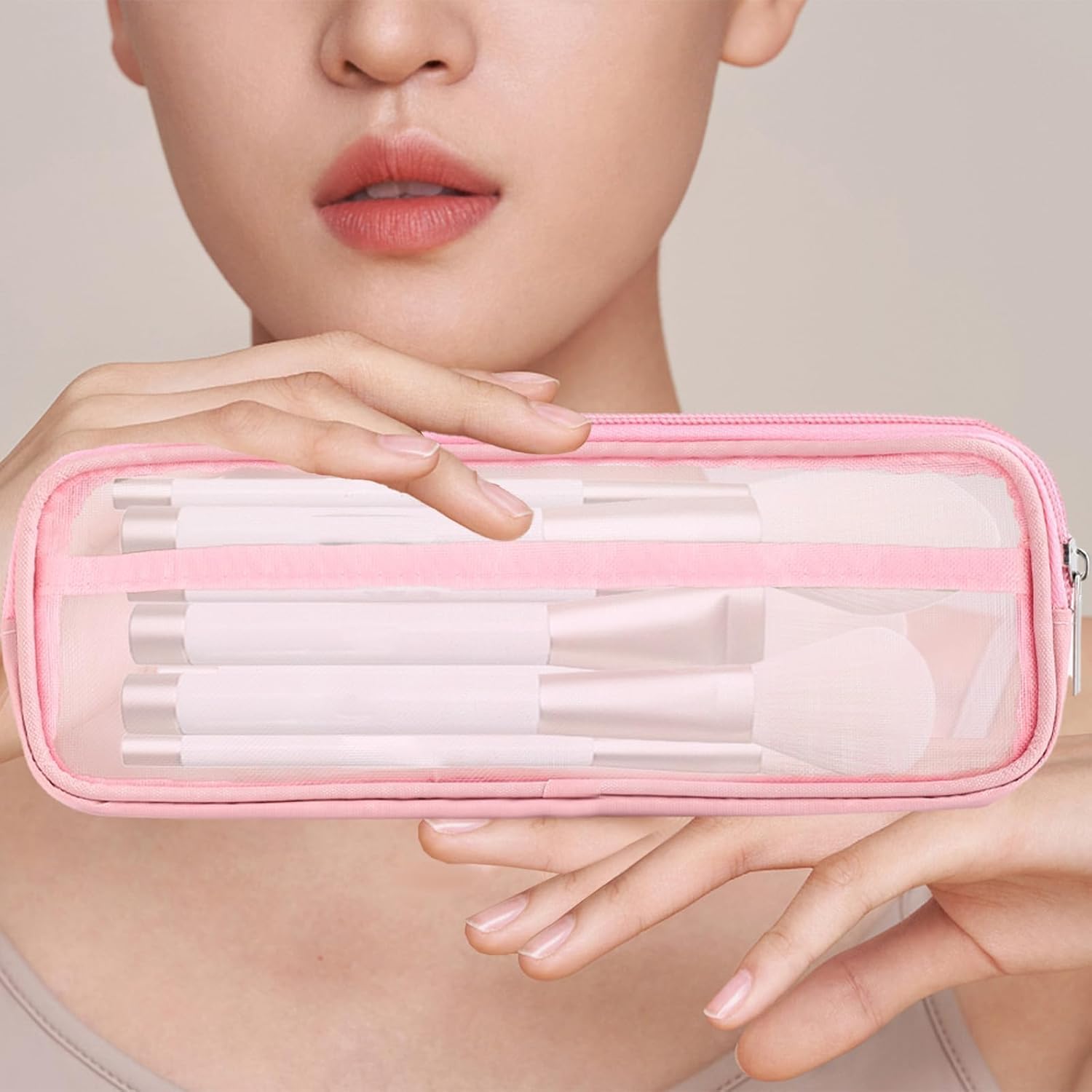【 Durable High Quality Material 】: This clear mesh makeup brush bag is made of nylon mesh with reinforced design around it, lightweight, and washable. Multiple uses, not easy to break or fade, environmentally friendly and safe, with a long service life.