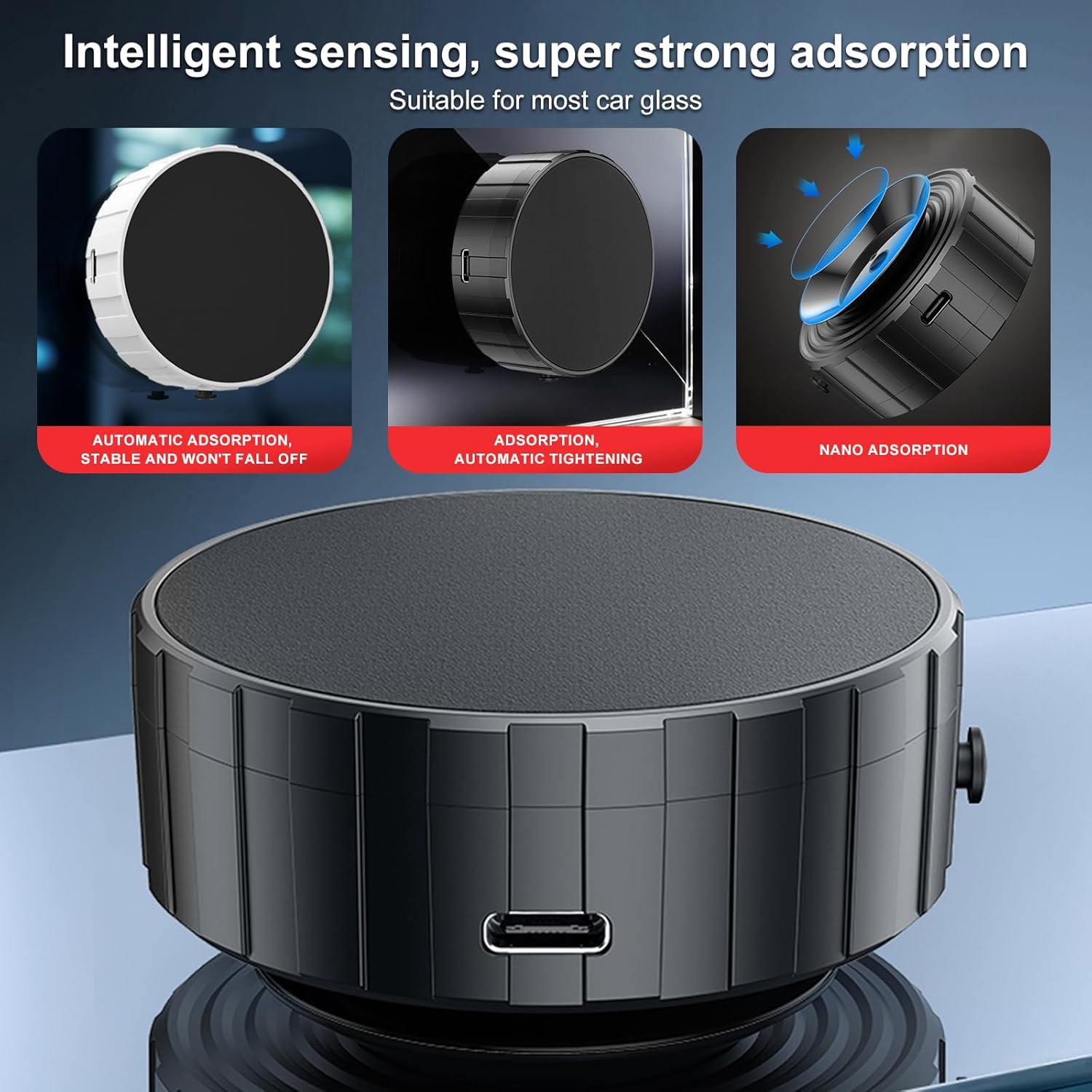 【Intelligent Induction, Strong Adsorption】 The magnetic cell phone holder for car utilizes advanced nano-induction adsorption technology. When approaching smooth surfaces like glass, it automatically activates its air suction system to ensure stable adhesion. To remove, simply press the side button for quick and easy release. Additionally, the magnetic side can attach to metal surfaces like fitness equipment, while the suction-based side securely holds your phone