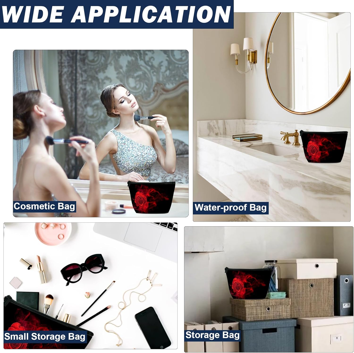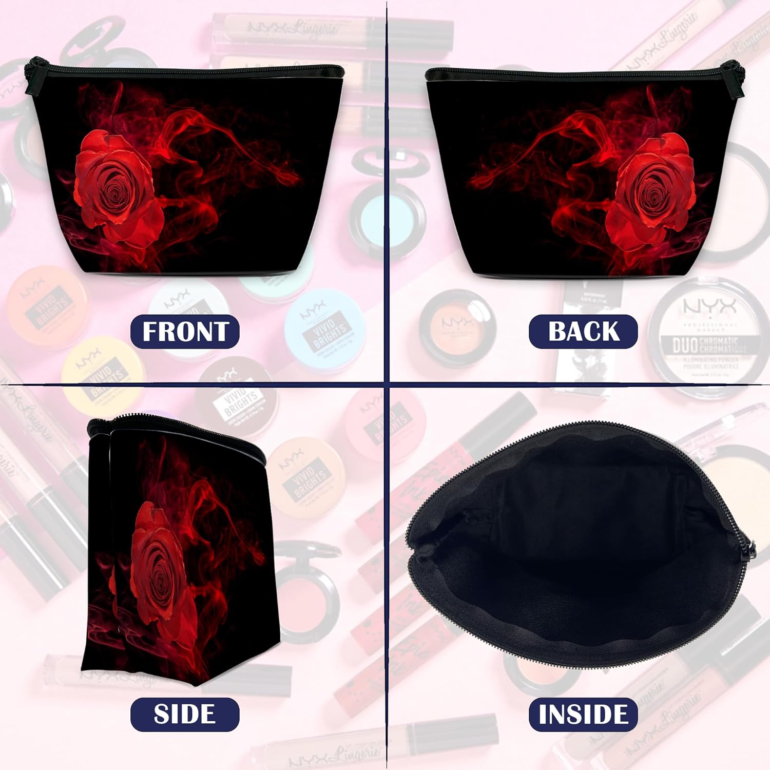 Makeup Bag for Purse Waterproof Funny Abstract Red Rose Cosmetic Bags for Women Zipper Travel Toiletry Pouch Black Leaves Makeup Bags Gift 9.5×5.9 Inch