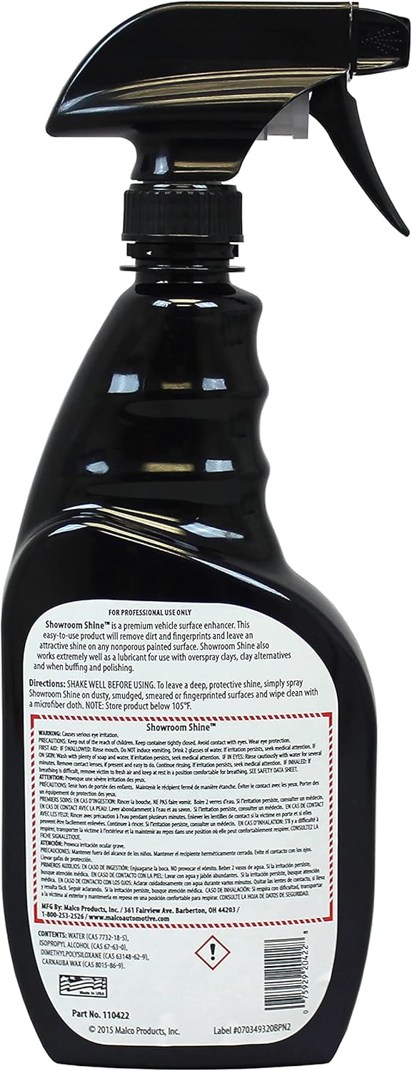 Malco Showroom Shine Spray Car Wax – Best Car Wax Spray for Professional Finish/Easy to Use Instant Detailer Spray/Cleans and Waxes Painted Surfaces, Metal and Glass / 22oz. (110422)