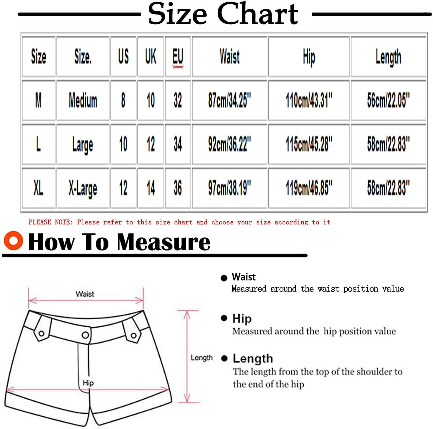 Size: M Size.: Medium US: 6 UK: 10 EU: 36 Waist: 90cm/35.43” Hip: 112cm/44.09” Front: 34cm/13.39” Back: 40cm/15.75” Length: 48cm/18.90”