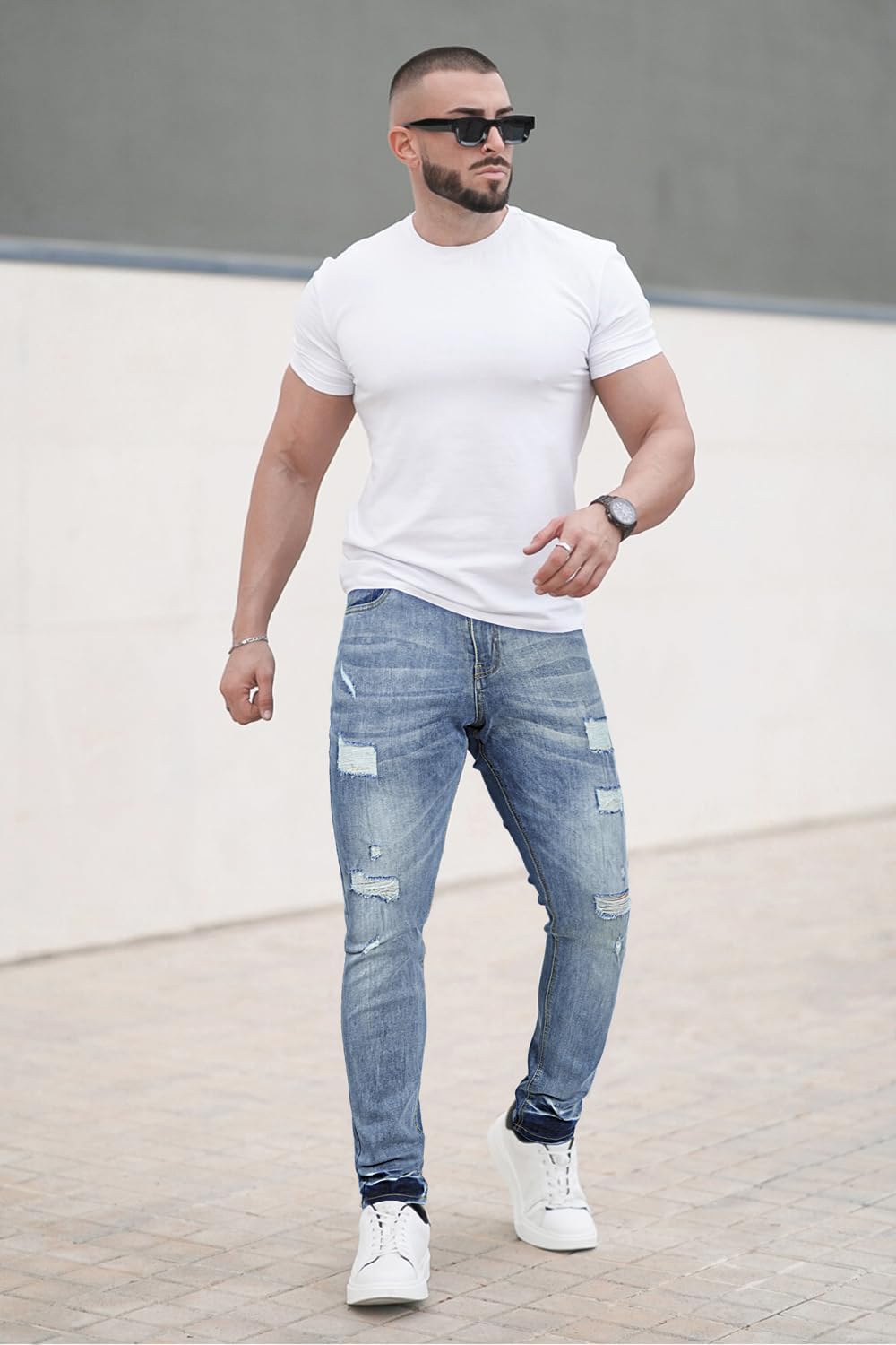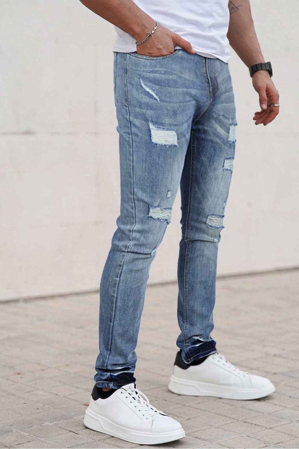 Men’s Classic Slim Fit Stretchy Jeans for Men Skinny Flex Denim Pants Ripped Designer