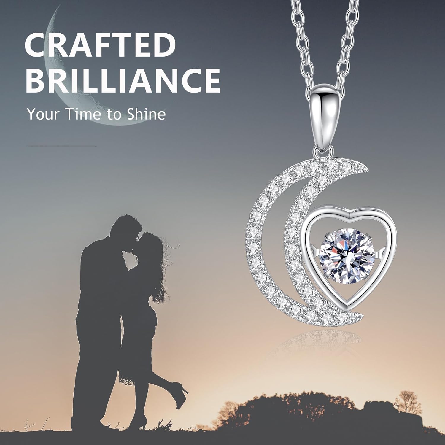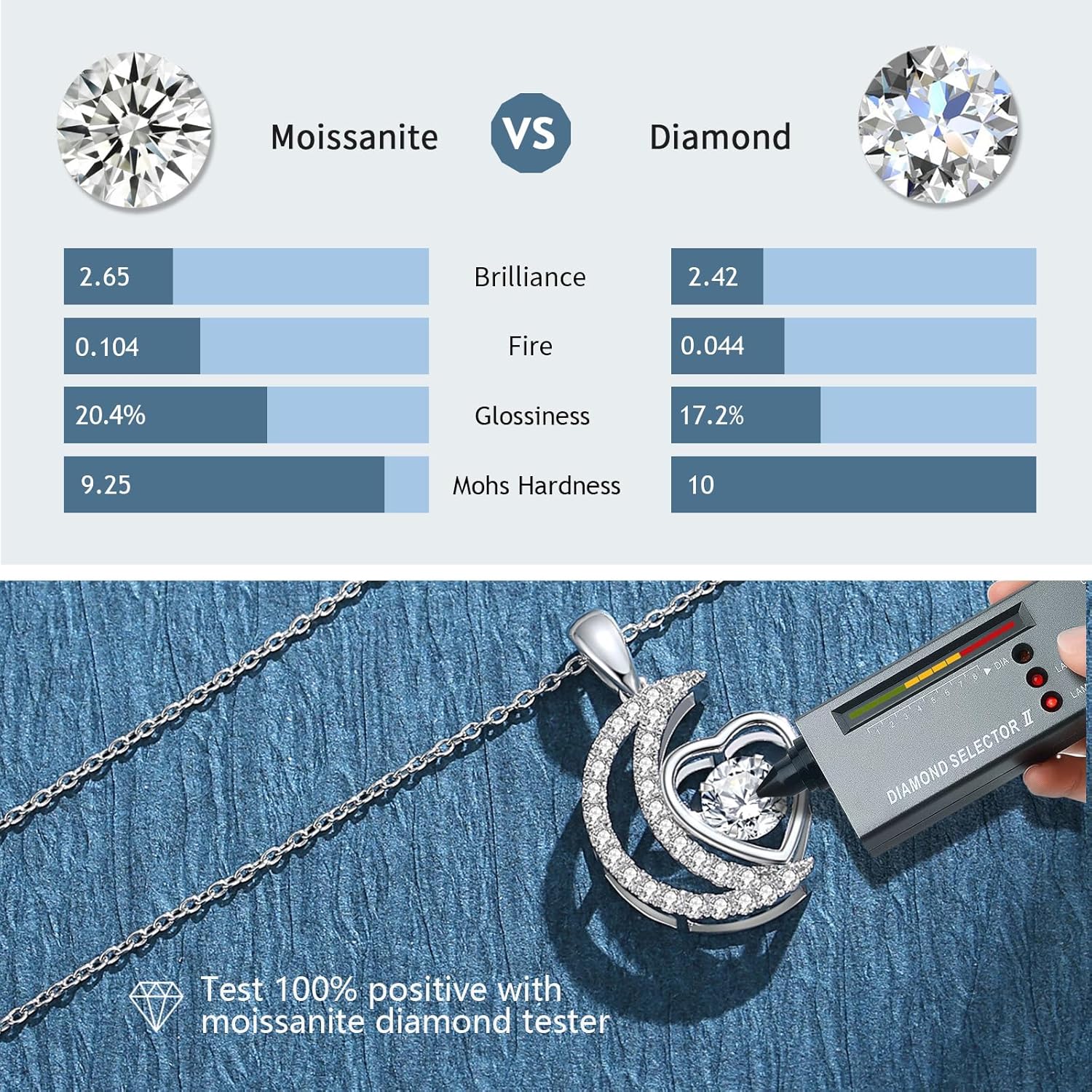 Moissanite Necklace for Woman,D Color VVS1 Dancing Jewelry Gift for Wife Her,S925 Sterling Silver Floating Pendant Necklaces for Birthday Anniversary Party Mother’S Day