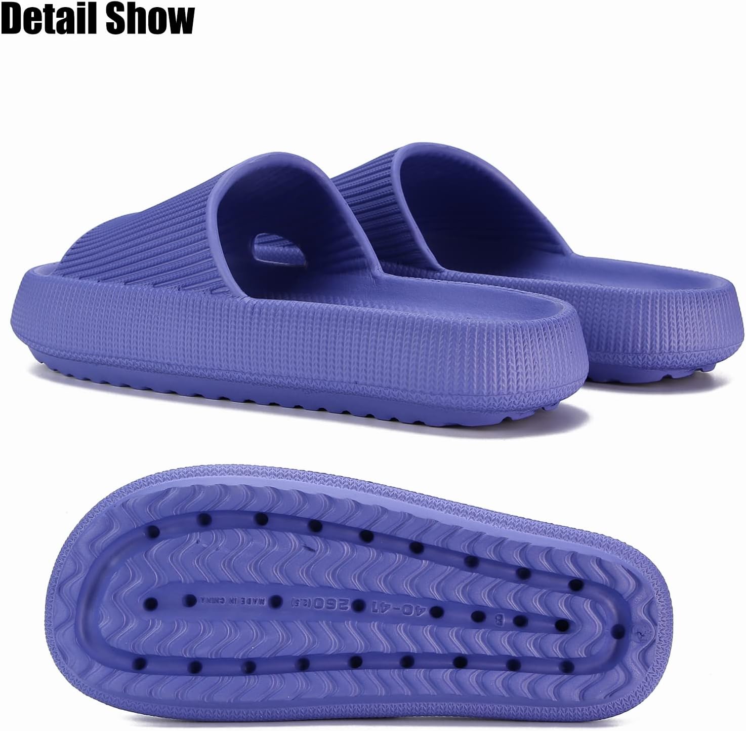 The wavy texture 3D pattern on the sole make the shoe can be easy to dry to offer all day comfort and grip the ground to achieve nonslip effects on bath room.