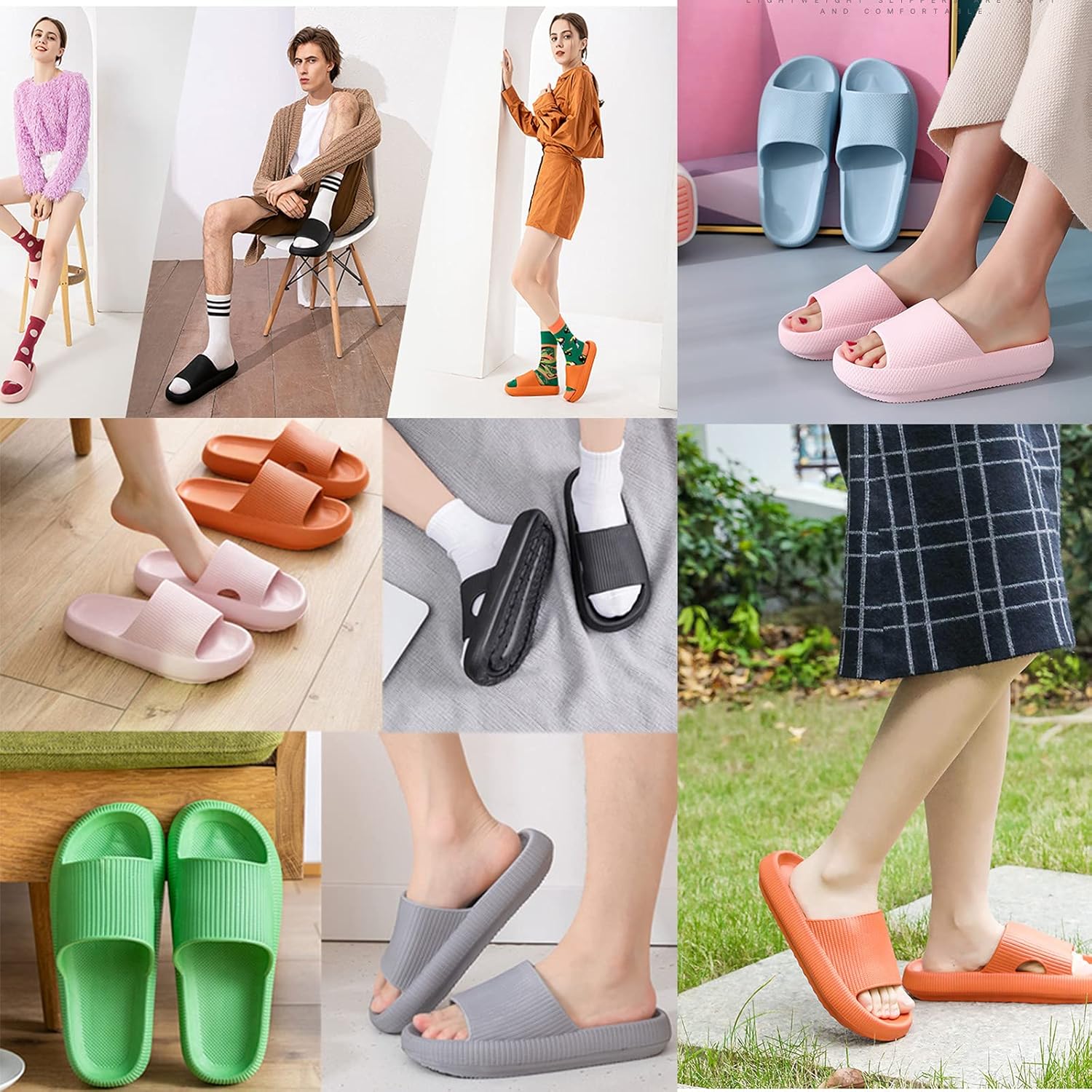 Pillow slippers are made of high quality outsole EVA material is durable,waterproof,washable,lightweight,softness,abrasion resistance,aging resistance and odorless.The material paticles are crystal clear and non-toxic.Better then the rubber slippers.