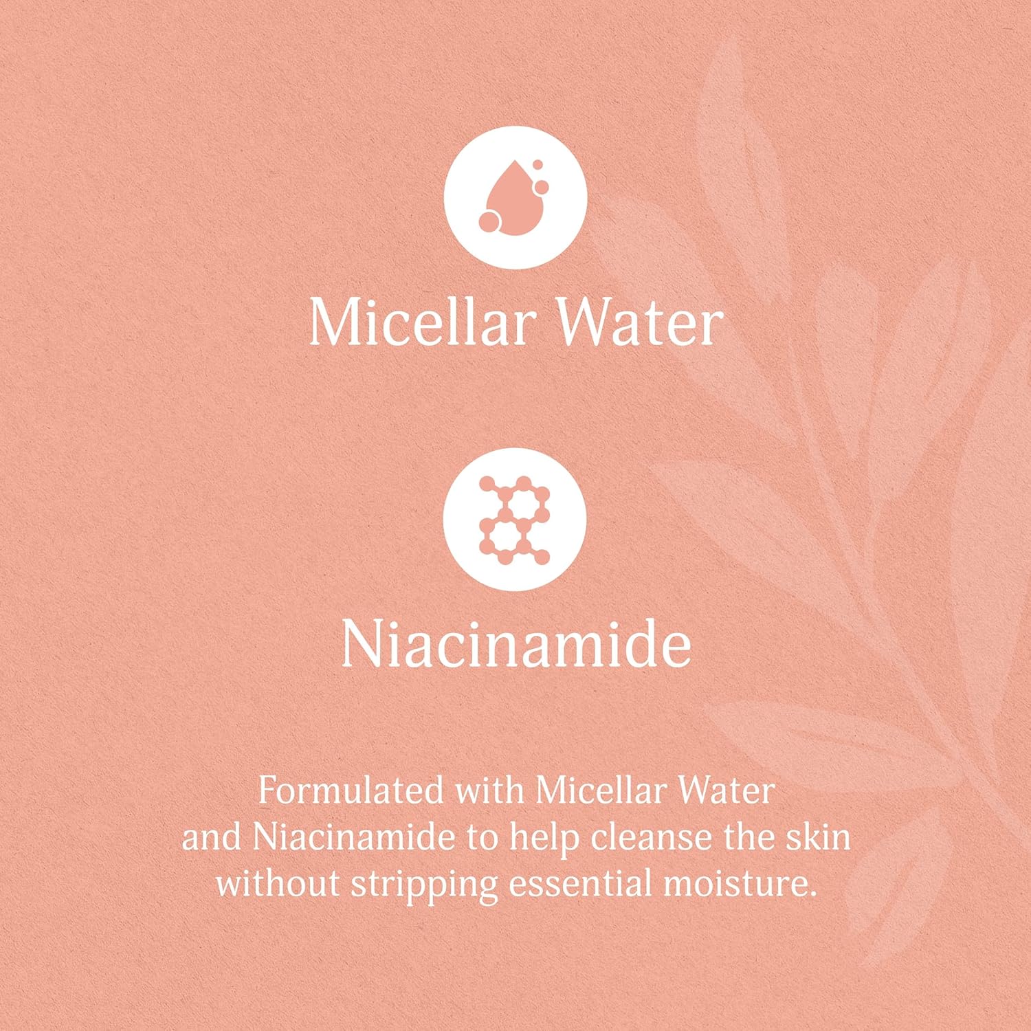 MICELLAR WATER & NIACINAMIDE: Micellar Water lifts away dirt, oil, and makeup, while Niacinamide helps to soothe and improve the skin’s texture.