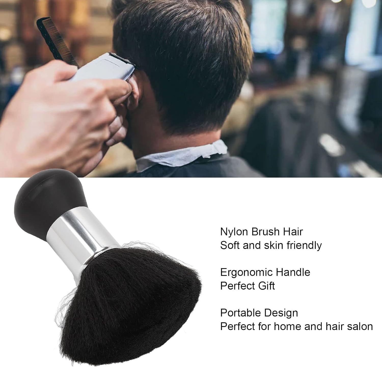 Soft Nylon mane: Made with high-quality soft nylon mane, this neck dust brush is gentle on the skin, providing a comfortable touch. The mane are designed to be skin-friendly, not easily falling off, and are effective in capturing hair while being safe for all skin types.