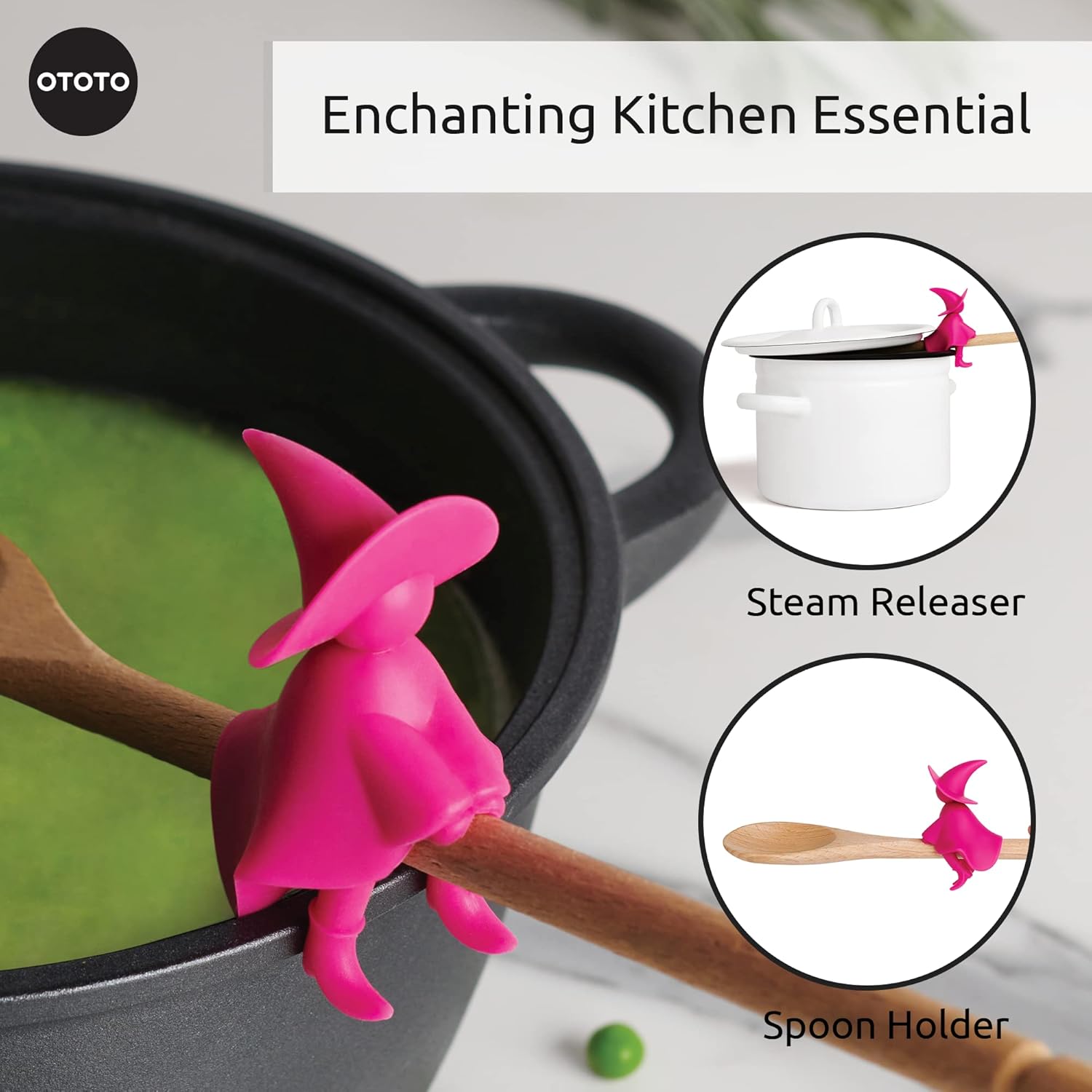 NEW!! Agatha Spoon Holder by OTOTO – Goth Cute Spoon Rest for Stove Top, Gothic Cooking Gadgets, Spooky Cooking Gifts, Witchy Gifts, Cool Kitchen Gadgets, Cool Gifts, Halloween Gifts (Pink)
