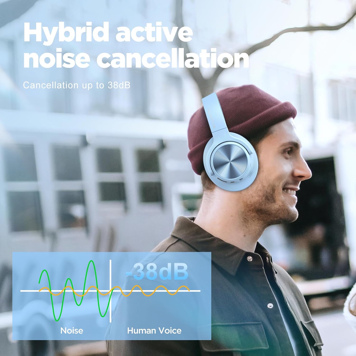 Noise Cancelling Headphones: Wireless Over Ear Bluetooth Headphones with 130H Playtime – Hi-Res Sound Custom EQ via App Deep Bass Comfort Fit Ear Cups for Travel Home Office