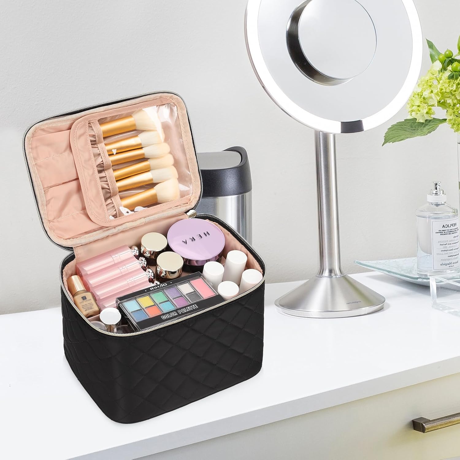 Separate Brushes Compartment – Our make up bag comes with a separate space to hold brushes and protect them from dust.reliable zippers, nice lining,every detail is delicately made. The whole bag is padded to protect your cosmetics during transportation.