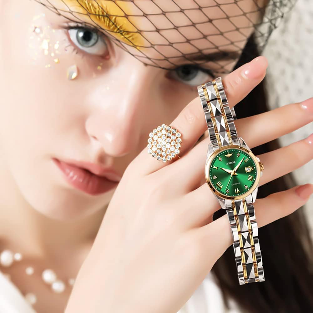 OLEVS Ladies Automatic Women Watches Luxury Diamond Sapphire Crystal Watch Elegant Dress Mechanical Tungsten Steel Waterproof Date