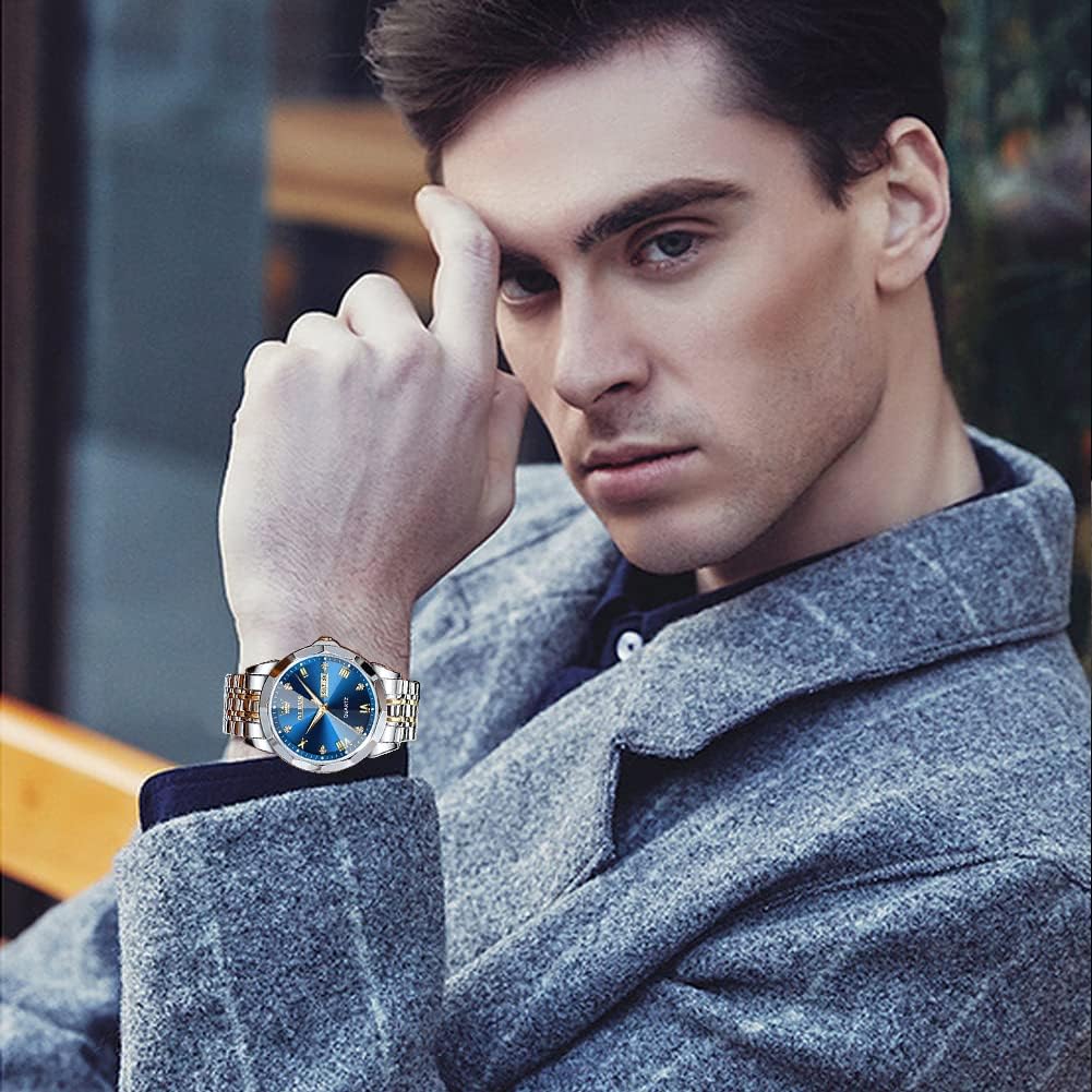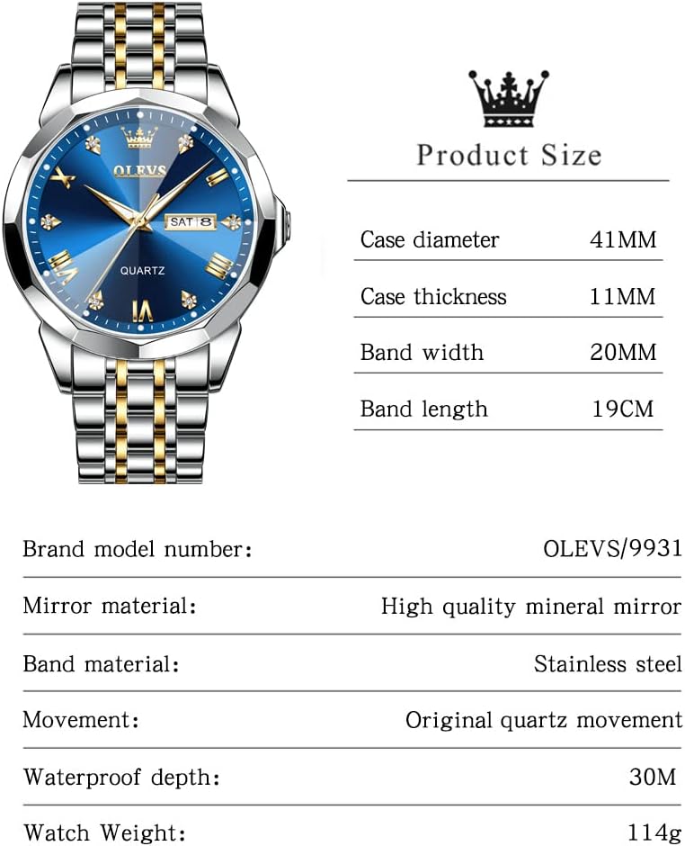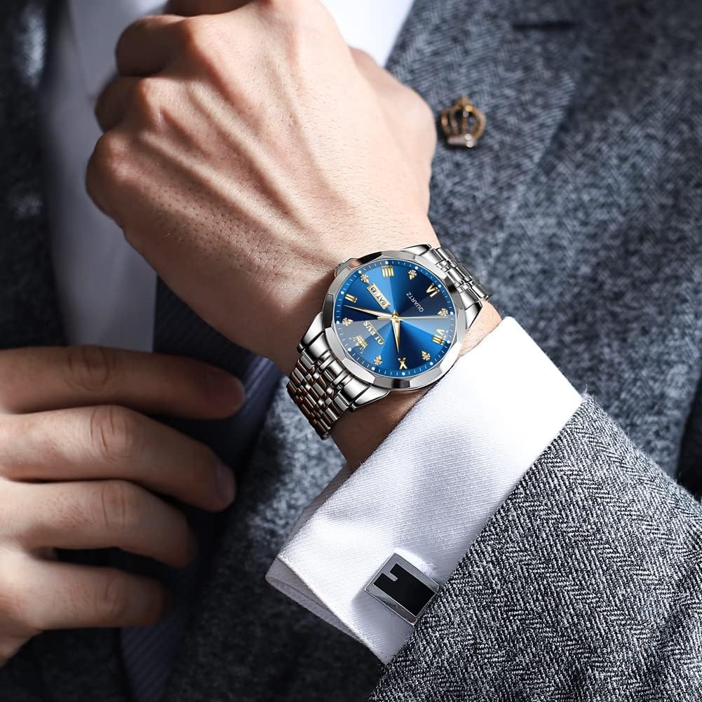 OLEVS Mens Watches Luxury Business Diamond Analog Quartz Watches for Men with Date Two Tone Stainless Steel Waterproof Luminous Dress Wrist Watches