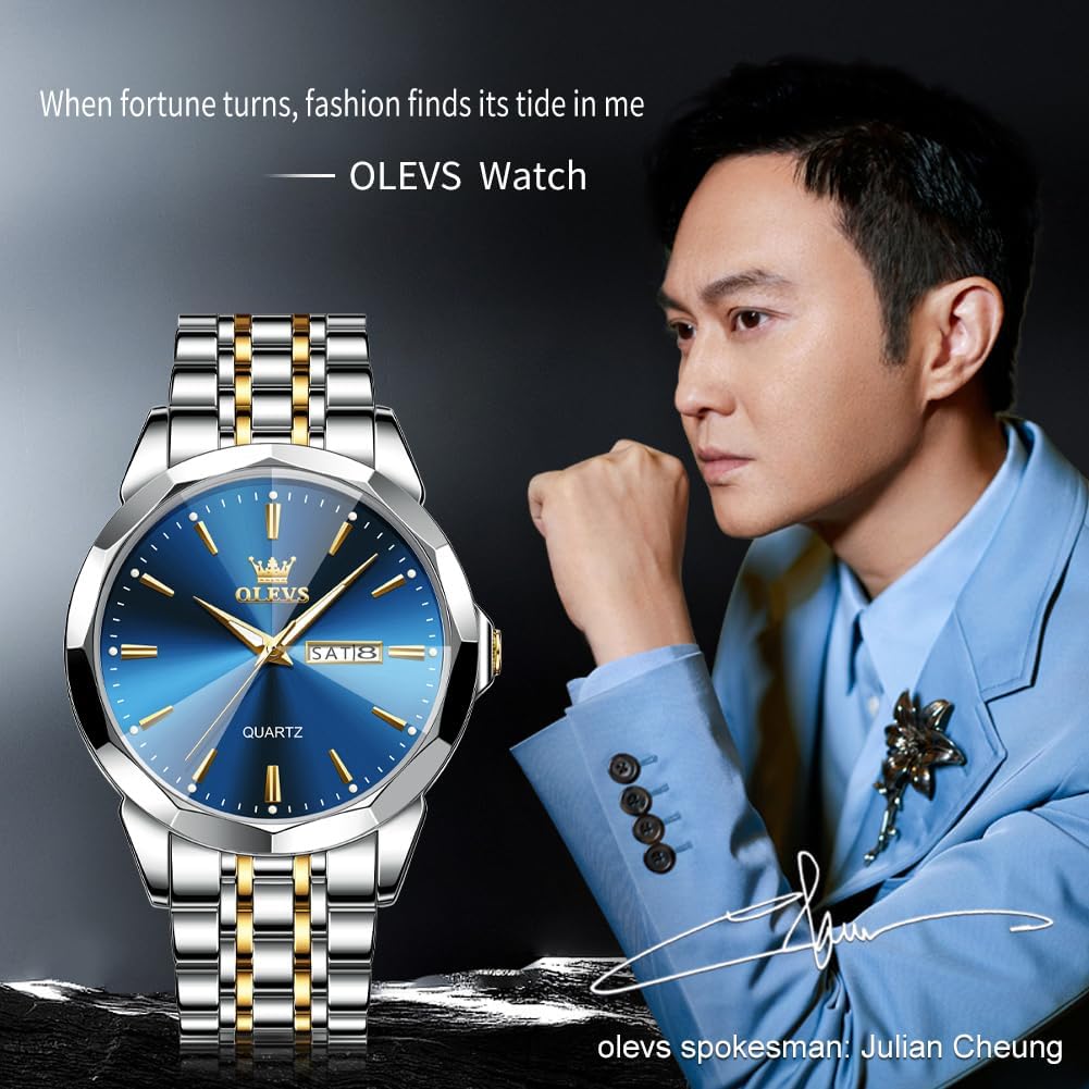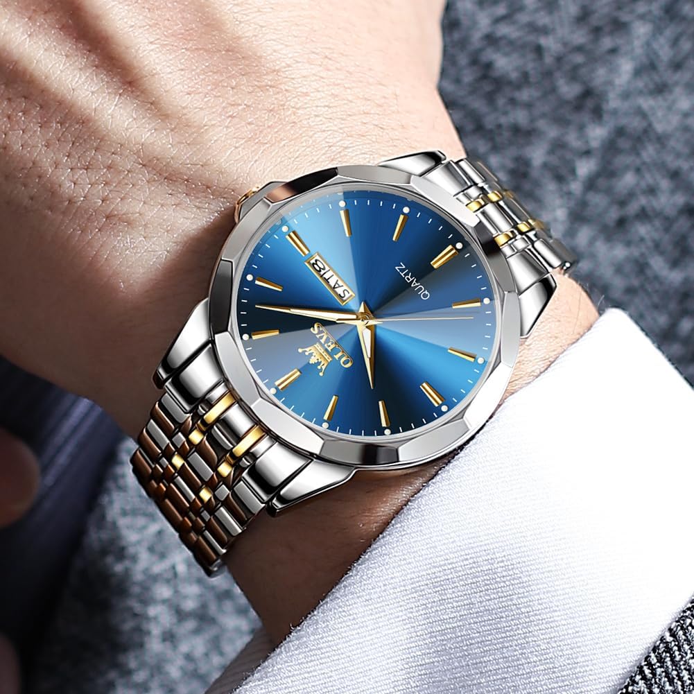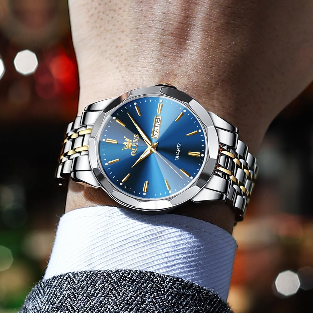 OLEVS Watch for Men Diamond Business Dress Analog Quartz Stainless Steel Waterproof Luminous Date Two Tone Luxury Casual Wrist Watch