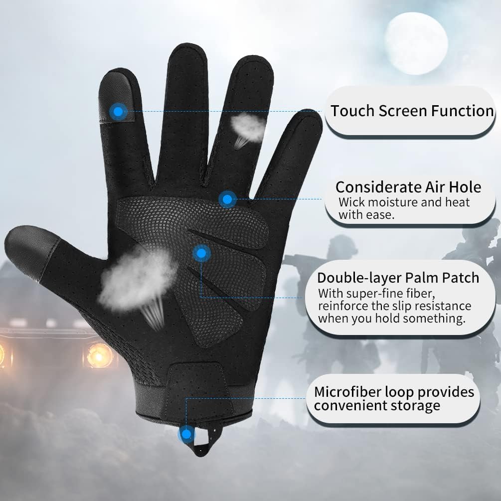 SUPERB KNUCKLE PROTECTION: Our Workout Gloves are meticulously engineered with reinforced microfiber material, offering superb cushioning that effectively withstands the impact of sharp objects. This shielding capability safeguards your hands from scratches and abrasions during tactical training or motorcycle cycling.