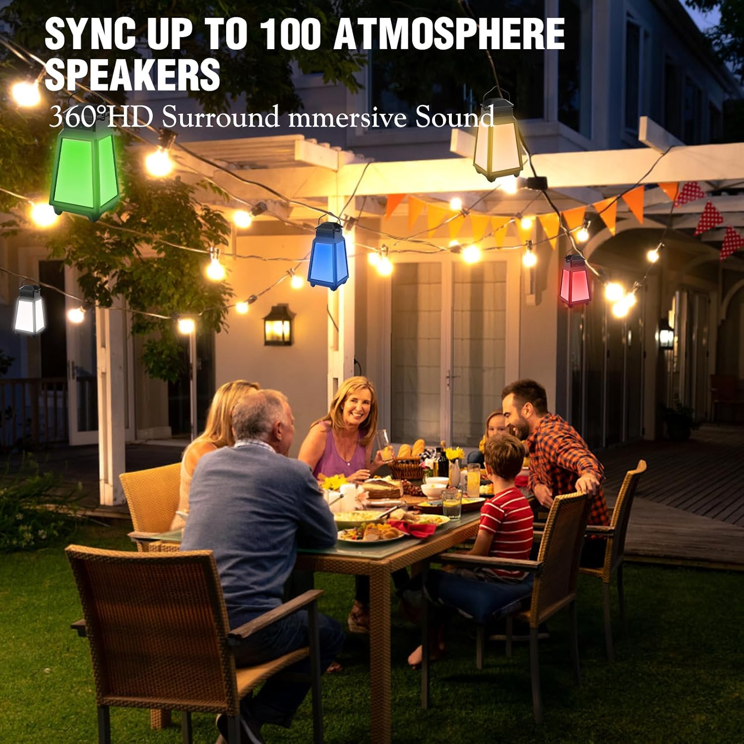Outdoor Speakers, Portable Bluetooth Speakers with 8 Switchable Lights, Multi-Sync up to 100 Speakers, Built-in HD Stereo Sound System, 4 Adjustable Brightness Levels Speakers for Patio|Porch|Party