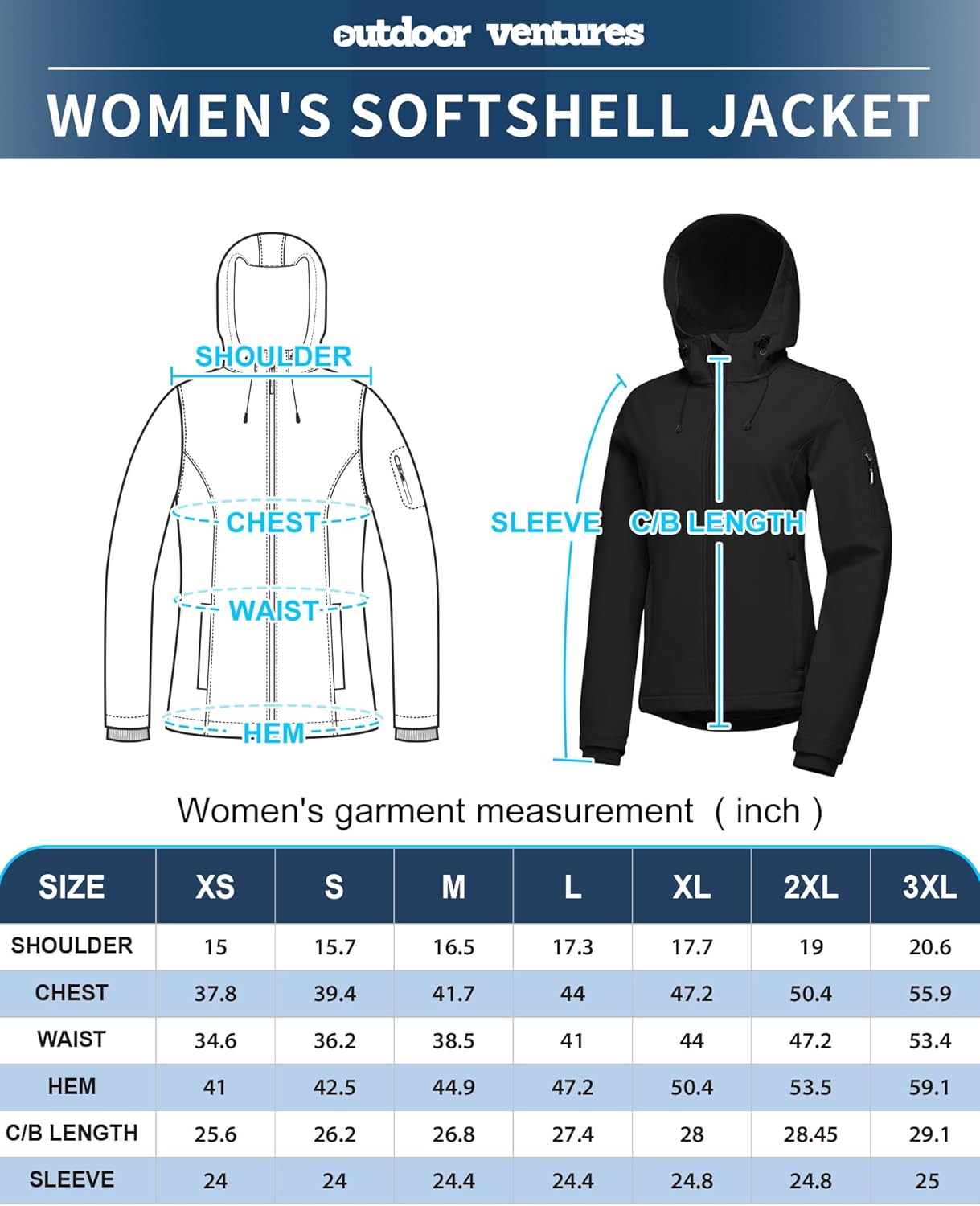 Outdoor Ventures Women’s Softshell Jacket with Hood Fleece Lined Warm Lightweight Waterproof Insulated Windbreaker